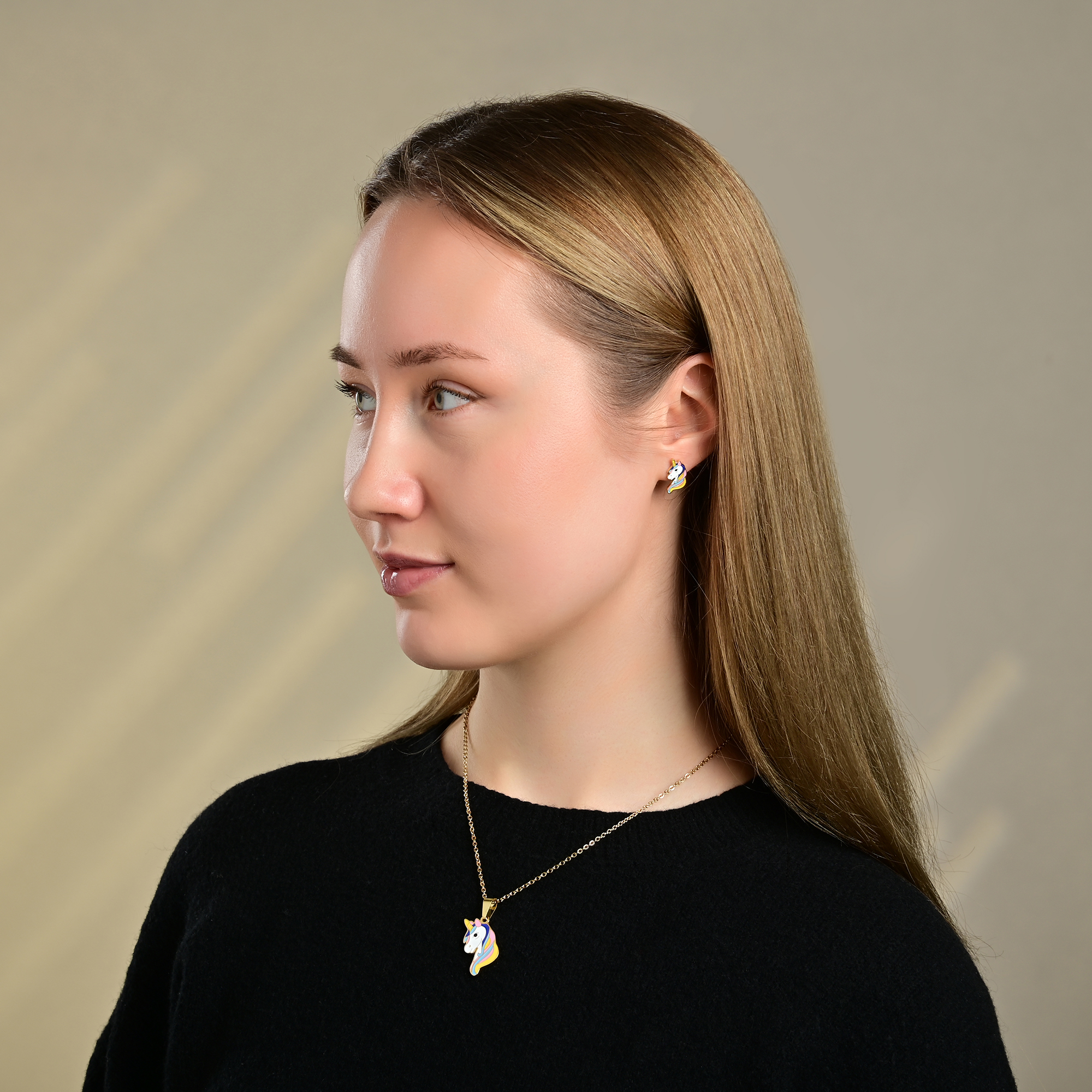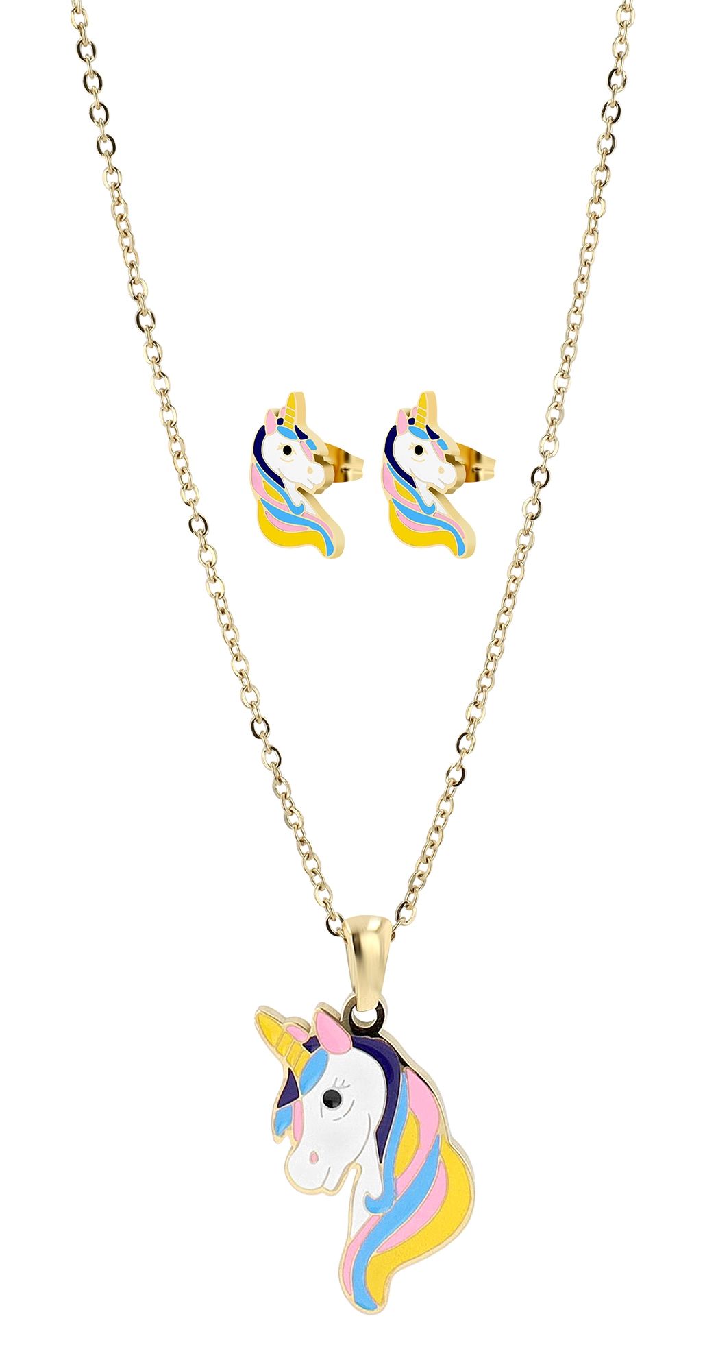 Productinformatie "Akzent Einhorn-Schmuckset "Amara", Edelstahl, Kette & Ohrstecker, goldfarben"