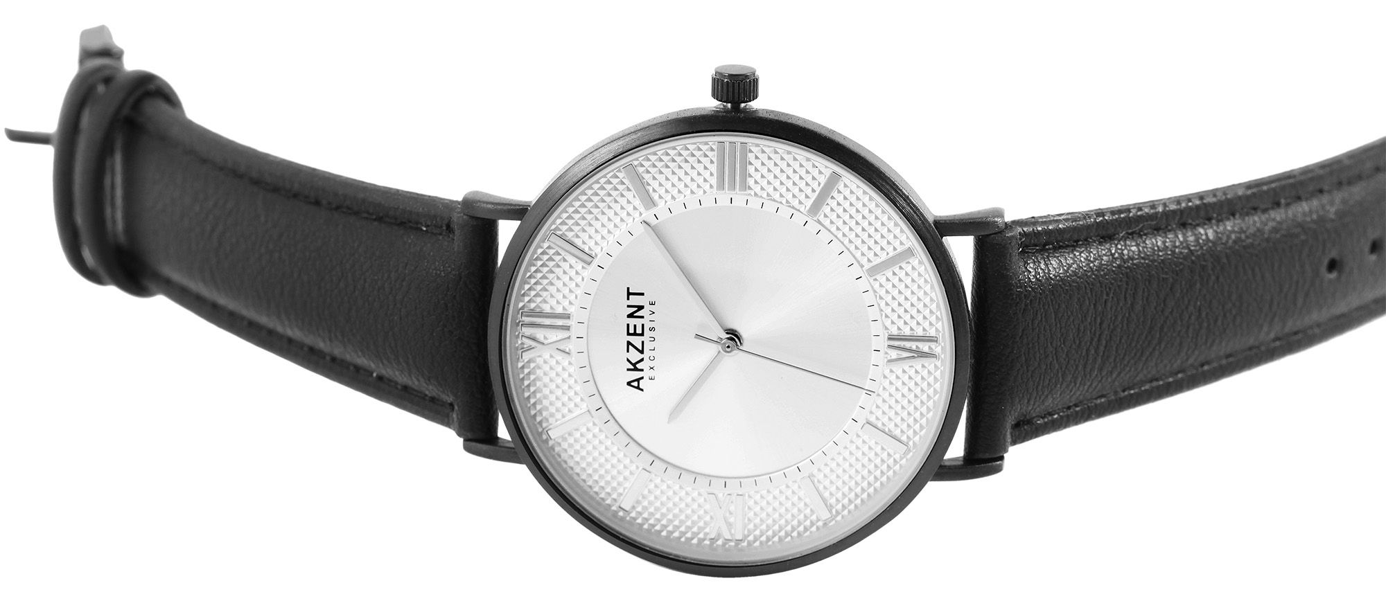 Productinformatie "Akzent Exclusief herenpolshorloge met imitatieleren band"