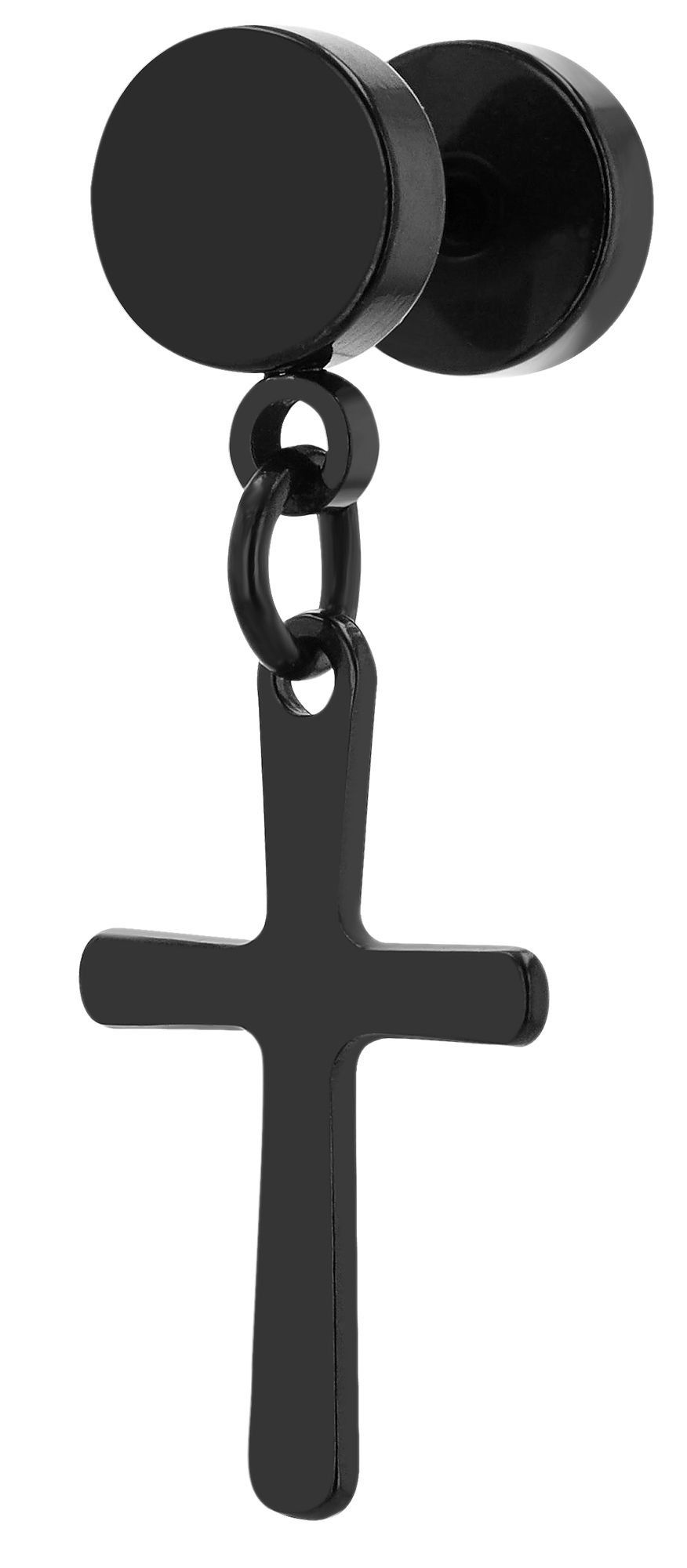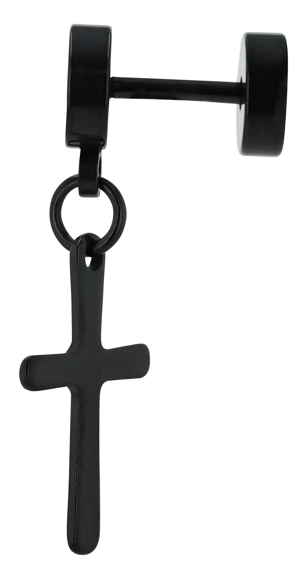 Productinformatie "Akzent Fake-Plug "Jace" mit Kreuzanhänger, Edelstahl, schwarz"