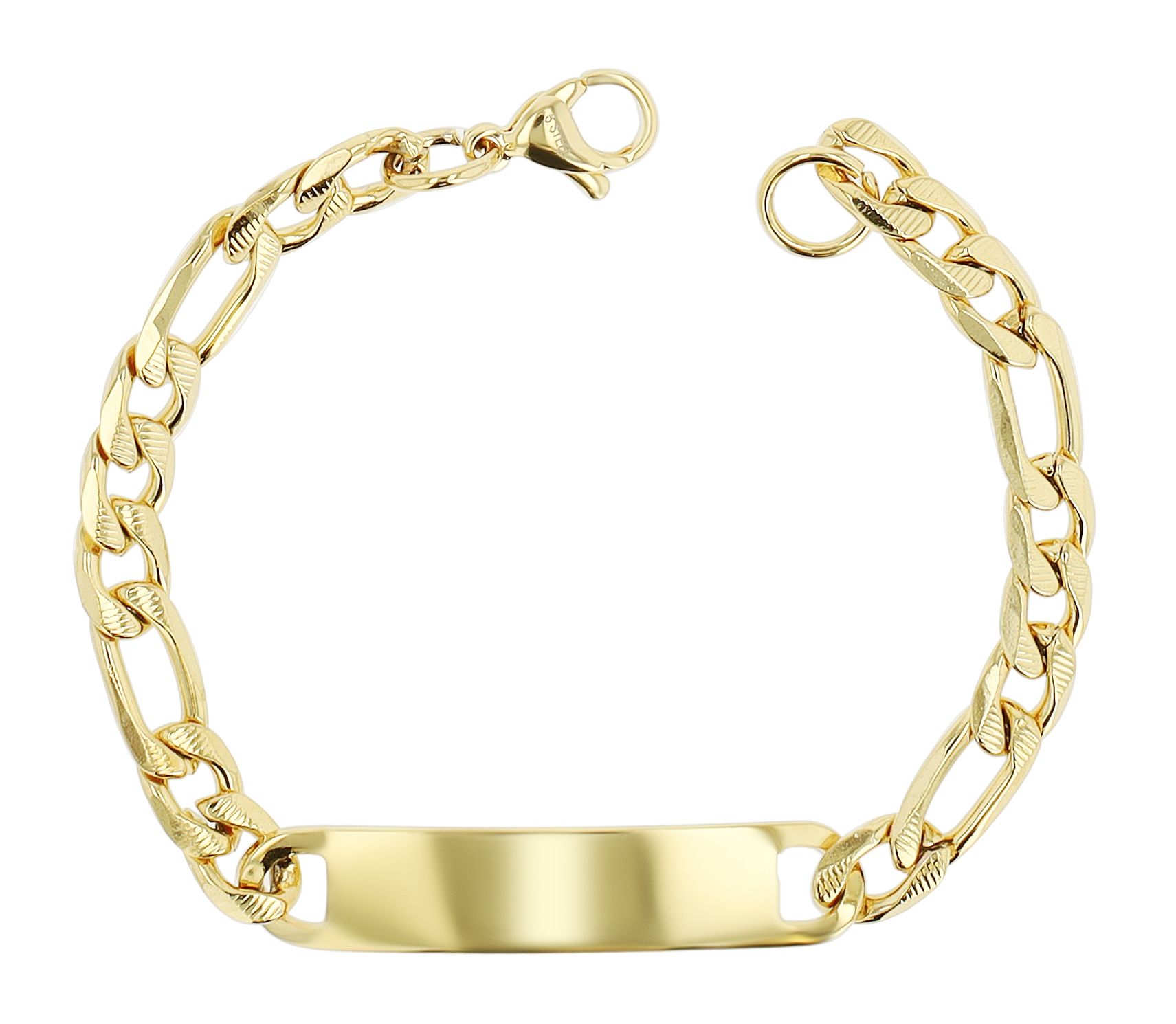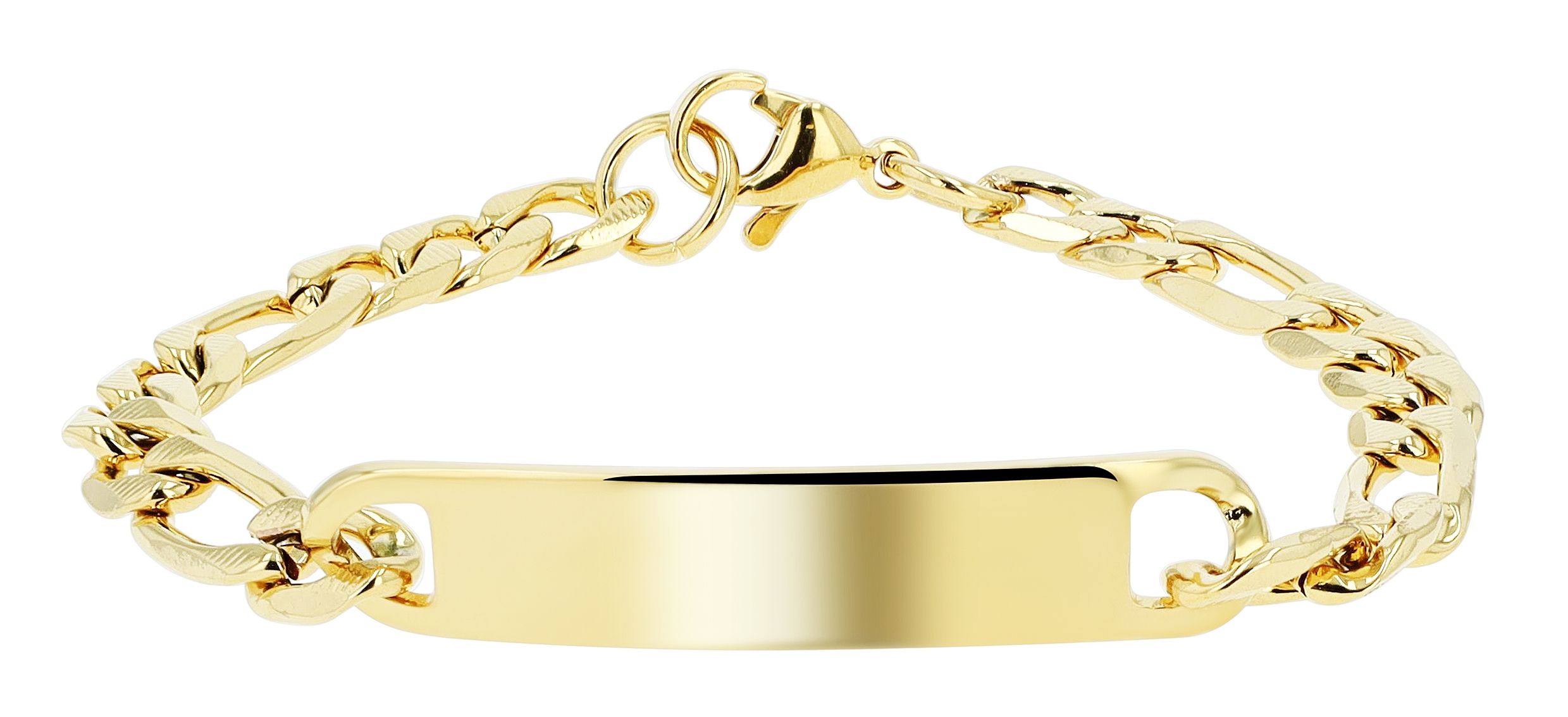 Productinformatie "Akzent Figaroarmband mit Gravurplatte, Edelstahl, 18 cm, goldfarben"