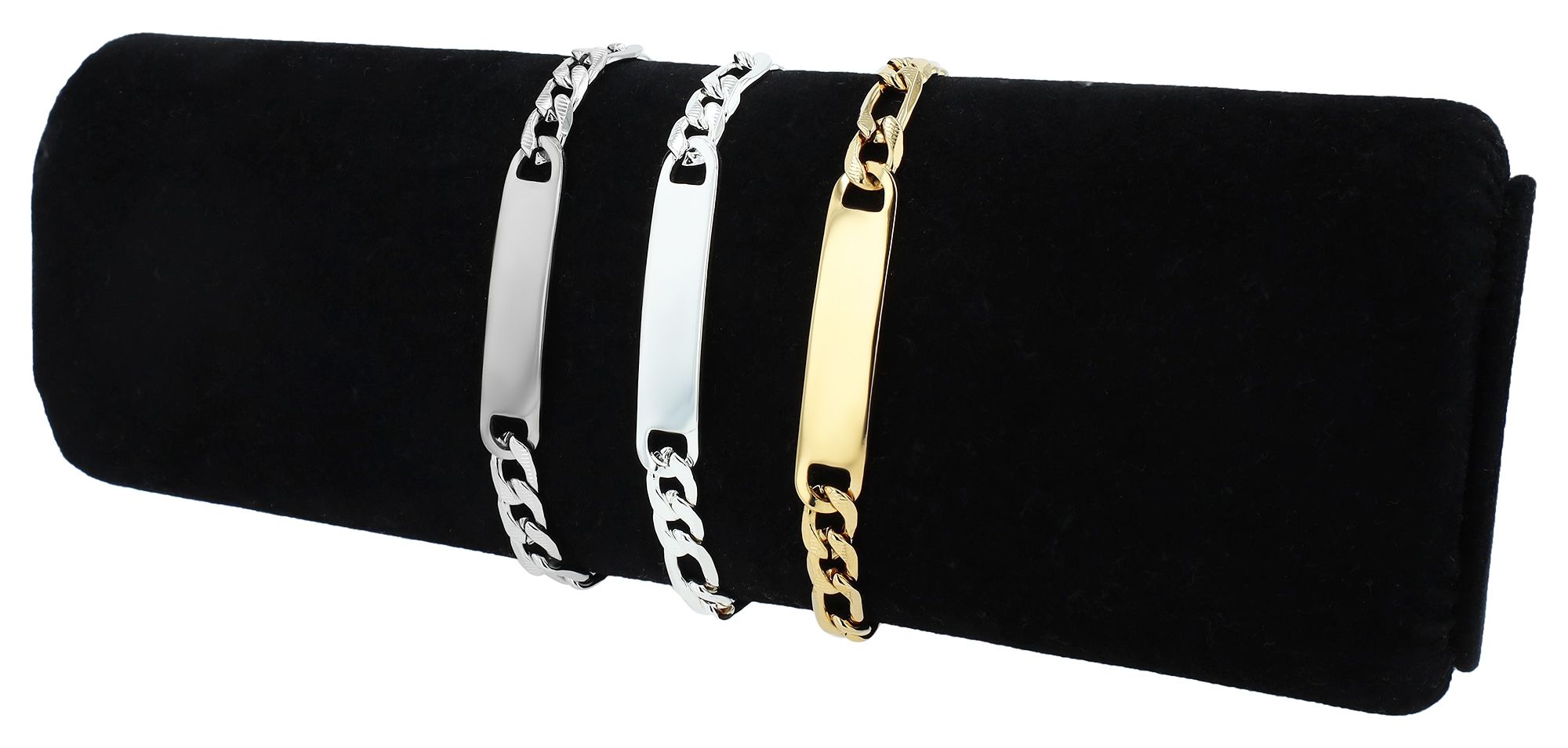 Productinformatie "Akzent Figaroarmband mit Gravurplatte, Edelstahl, 18 cm, silberfarben"