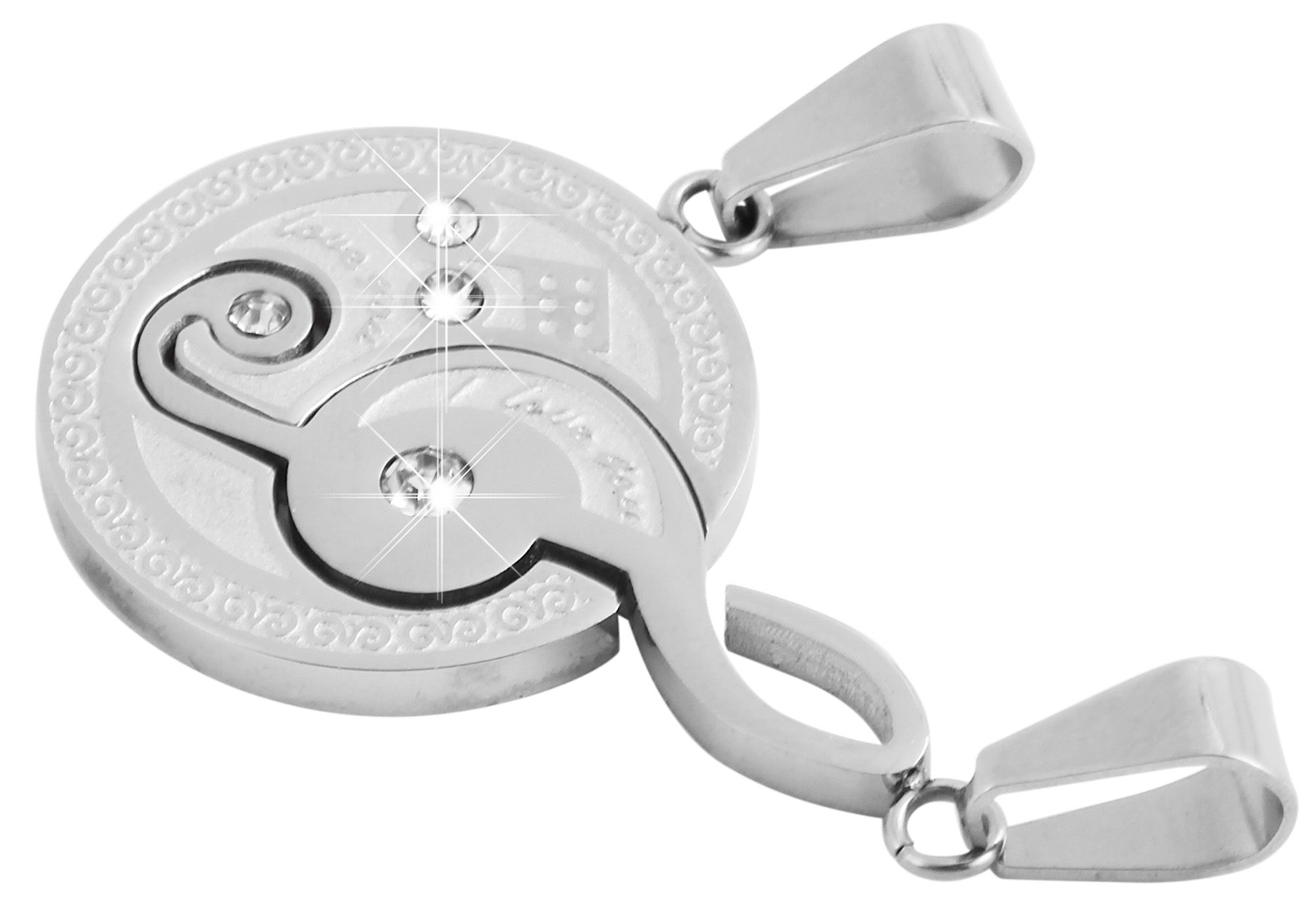 De hanger van het merk Akzent is gemaakt van roestvrij staal. Dit materiaal belooft een lange levensduur. De roestvrijstalen hanger bestaat uit twee delen, waardoor hij ideaal is als vriendschaps- of partnerhanger. Beide delen zijn versierd met kleine versieringen en similli steentjes. Als je de hanger bij elkaar houdt, zijn er in totaal 4 simili-stenen. De vriendschapshanger kan samen of apart gedragen worden. De kleur is zilver. De afmetingen zijn: lengte 36 mm, breedte 24 mm en dikte 3 mm.