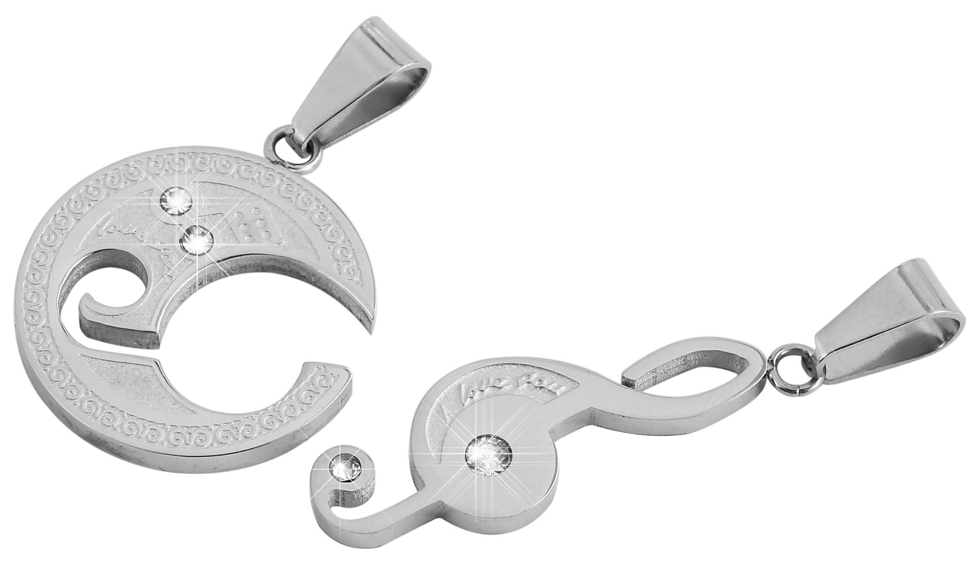Productinformatie "Akzent Freundschaft Edelstahlanhänger mit Similisteinen, silberfarbig, Mond, Musiknote"