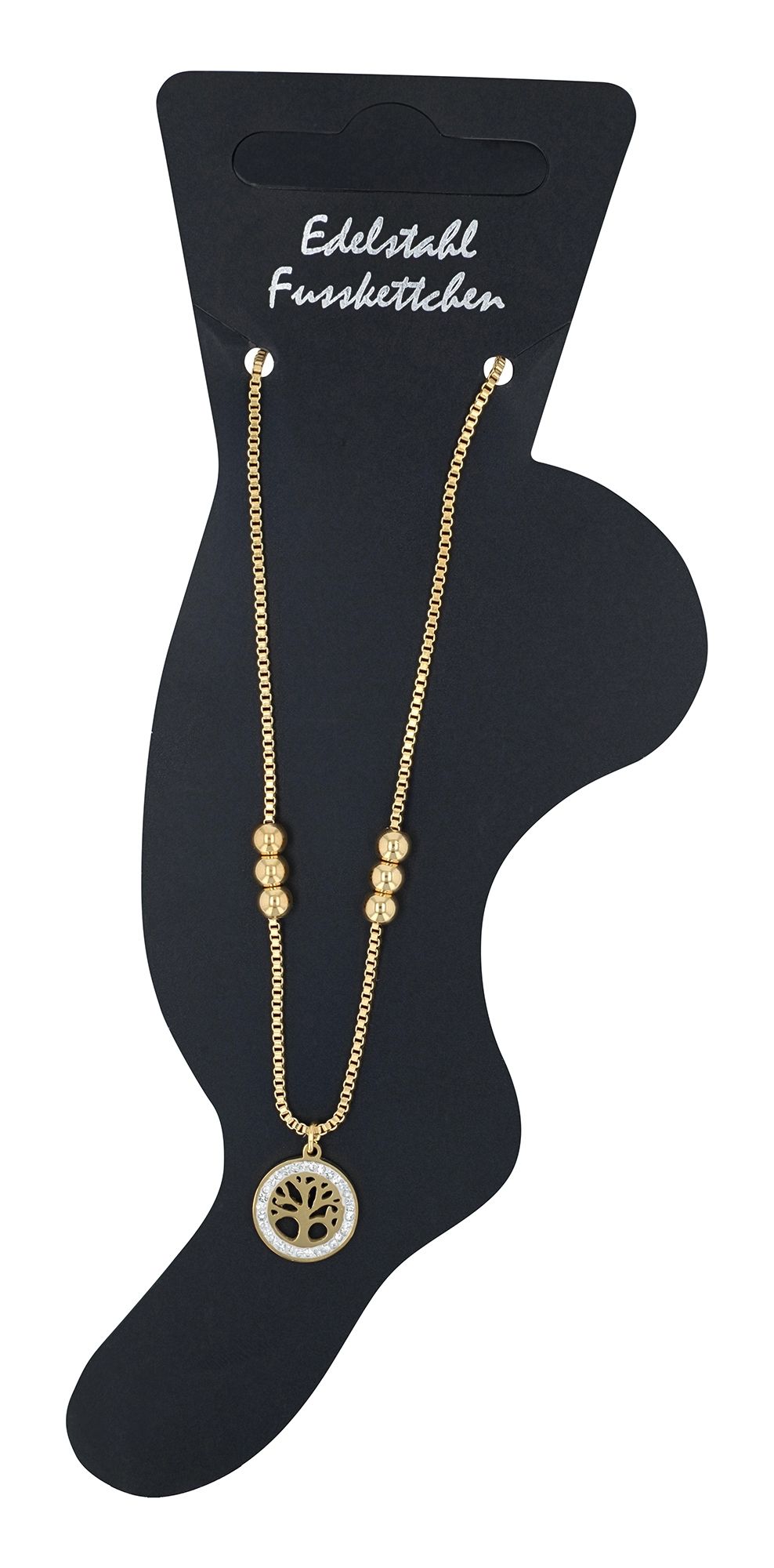 Productinformatie "Akzent Fußkettchen "Vanya" mit Lebensbaumanhänger, Edelstahl, goldfarben"