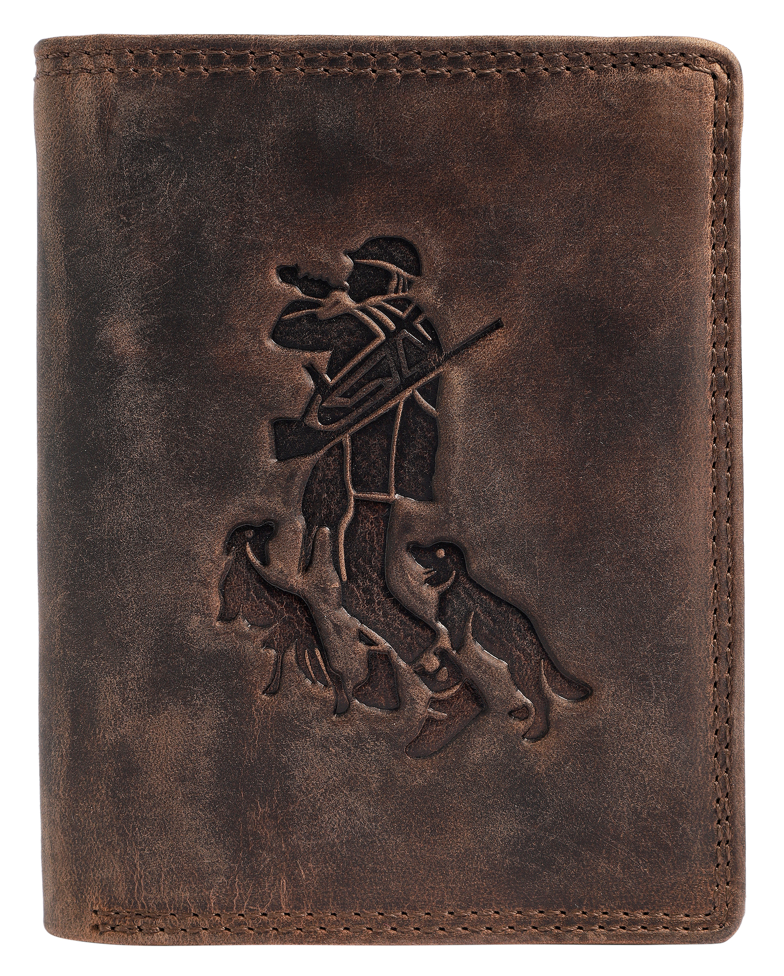 De Akzent portemonnee is gemaakt van echt leer in staand formaat en heeft een onmiskenbaar design dankzij het reliëf in de vorm van een jager. De portemonnee is een echte ruimtebespaarder en biedt veel opbergruimte voor al je belangrijke documenten. De dubbele stiksels aan de buiten- en binnenkant zorgen voor een goede duurzaamheid en stabiliteit. Dankzij de handige indeling heeft hij 9 creditcardvakjes, 2 biljetvakken, 1 muntvak met drukknoopsluiting, 1 ritsvak aan de binnenkant, 2 steekvakken en 3 transparante ID-kaartvakken en een extra drukknoopsluiting aan de binnenkant houdt de pasjes veilig. De ongevulde maat is 9,5 cm lang, 12 cm breed en 2 cm dik. Een geweldig accessoire met het perfecte formaat voor dagelijks gebruik.