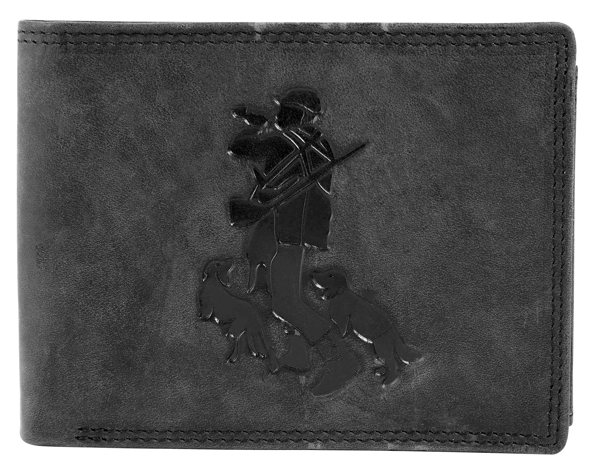 De Akzent portemonnee is gemaakt van echt leer in liggend formaat en heeft een onmiskenbaar ontwerp dankzij het reliëf in de vorm van een jager met een hond. De portemonnee is een echte ruimtebespaarder en biedt veel opbergruimte voor al je belangrijke documenten. De dubbele stiksels aan de buiten- en binnenkant zorgen voor een goede duurzaamheid en stabiliteit. Dankzij de handige indeling heeft hij 6 creditcardvakjes, 2 biljetvakken, 1 muntvak met drukknoopsluiting, 1 ritsvak aan de binnenkant, 2 steekvakken en 3 transparante ID-kaartvakken en een extra drukknoopsluiting aan de binnenkant houdt de pasjes veilig. De ongevulde maat is 9 cm lang, 12 cm breed en 2 cm dik. Een geweldig accessoire met het perfecte formaat voor dagelijks gebruik.