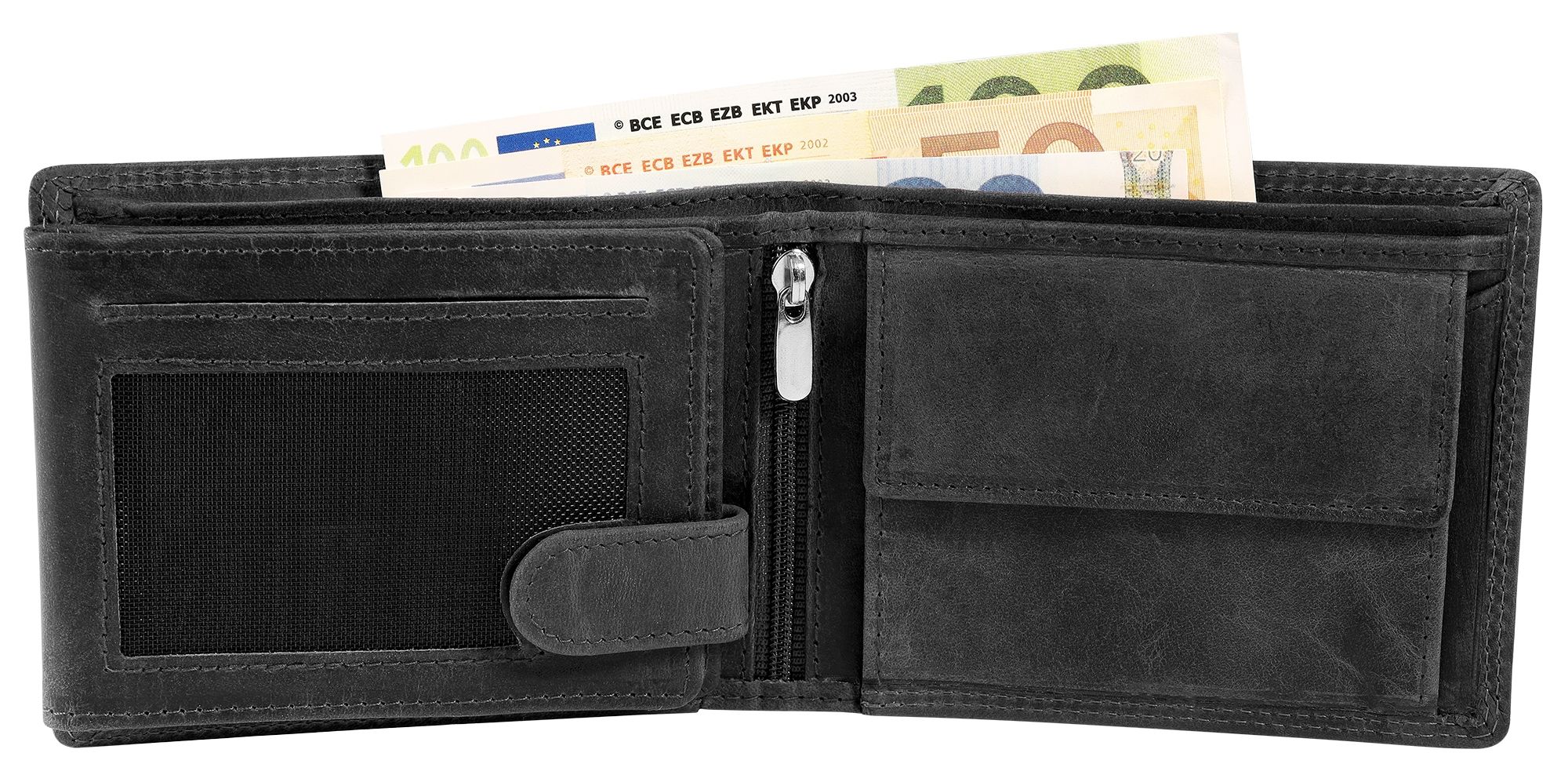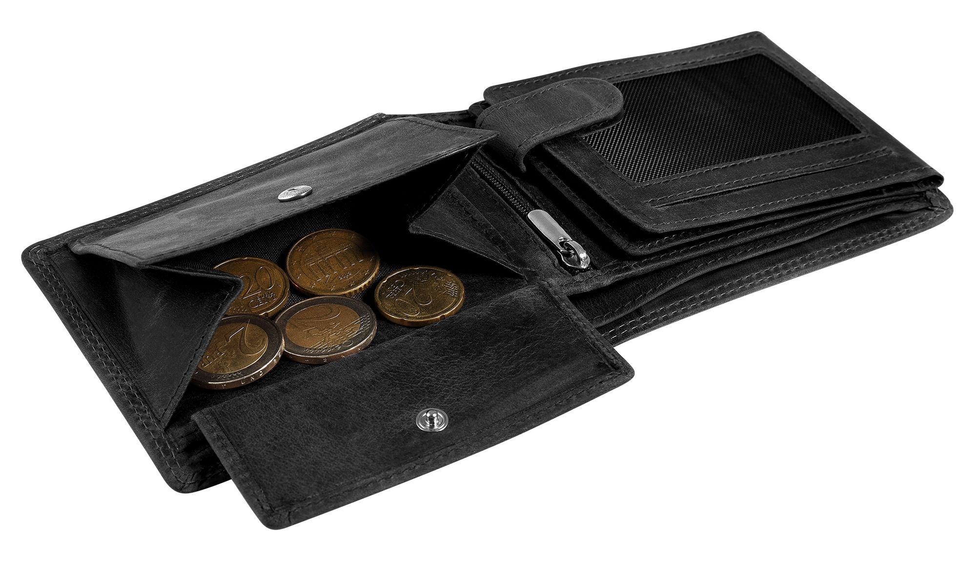 De Akzent portemonnee is gemaakt van echt leer in liggend formaat en heeft een onmiskenbaar ontwerp dankzij het reliëf in de vorm van een schedel. De portemonnee is een echte ruimtebespaarder en biedt veel opbergruimte voor al je belangrijke documenten. De dubbele stiksels aan de buiten- en binnenkant zorgen voor een goede duurzaamheid en stabiliteit. Dankzij de handige indeling heeft hij 6 creditcardvakjes, 2 biljetvakken, 1 muntvak met drukknoopsluiting, 1 ritsvak aan de binnenkant, 2 steekvakken en 3 transparante ID-kaartvakken en een extra drukknoopsluiting aan de binnenkant houdt de pasjes veilig. De ongevulde maat is 9 cm lang, 12 cm breed en 2 cm dik. Een geweldig accessoire met het perfecte formaat voor dagelijks gebruik.