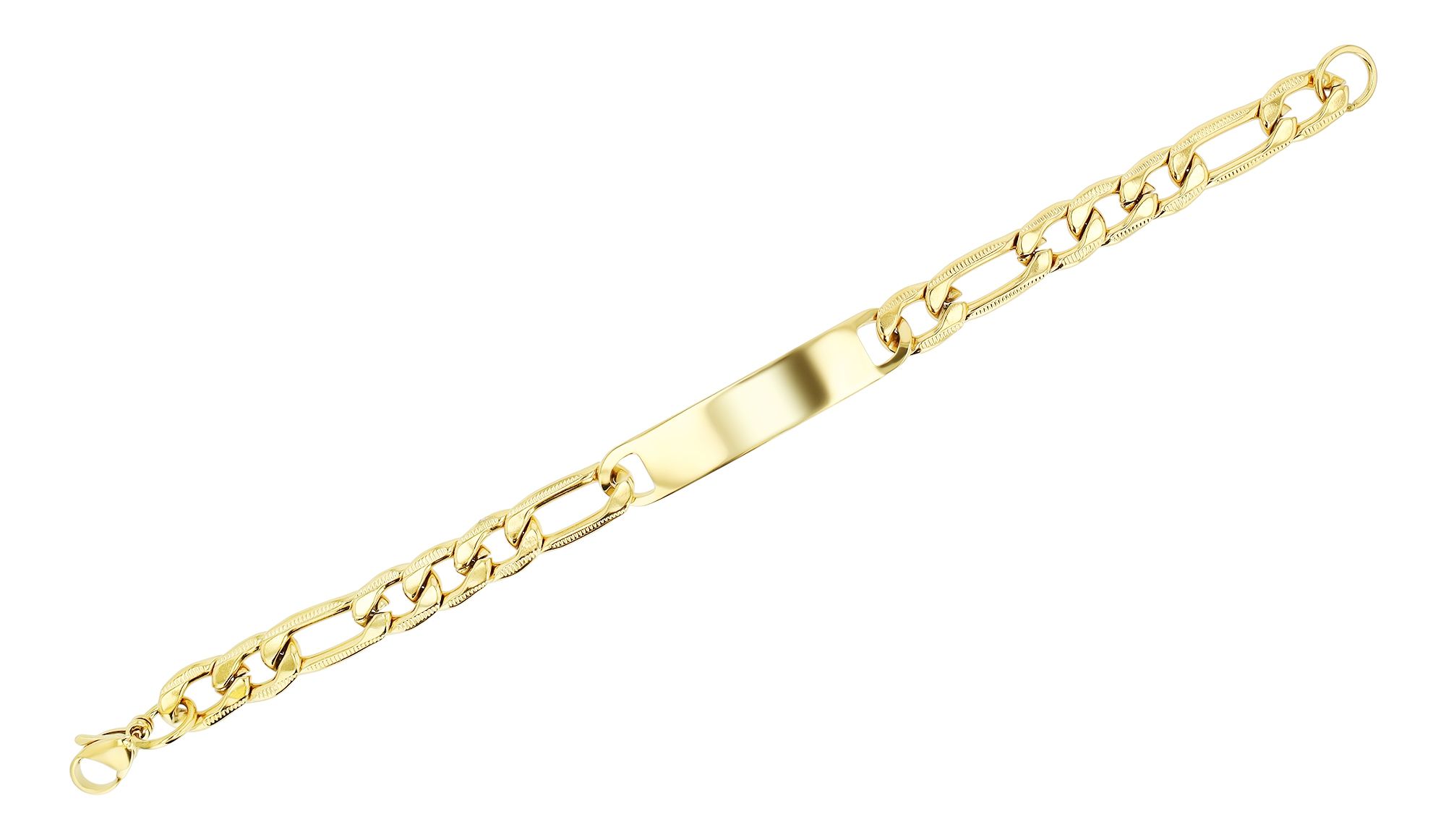 De Figaro armband van het merk Akzent is 21 cm lang, 9 mm breed en 2,5 mm dik - de perfecte combinatie van kracht en subtiliteit. Gemaakt van roestvrij staal belooft het niet alleen robuuste duurzaamheid, maar ook tijdloze schoonheid die de tand des tijds zal doorstaan. De speciale rangschikking van de kettingelementen wordt gekenmerkt door een afwisselende opeenvolging van langwerpige en ovale schakels, wat de armband een opvallende en toch elegante charme geeft. Gesloten met een karabijnsluiting, biedt de Figaro armband niet alleen een veilige houvast, maar is ook gemakkelijk te hanteren. Het graveerplaatje, 50 mm lang en 10 mm breed, biedt ruimte voor persoonlijke boodschappen, of het nu een naam, een datum of een betekenisvolle inscriptie is.