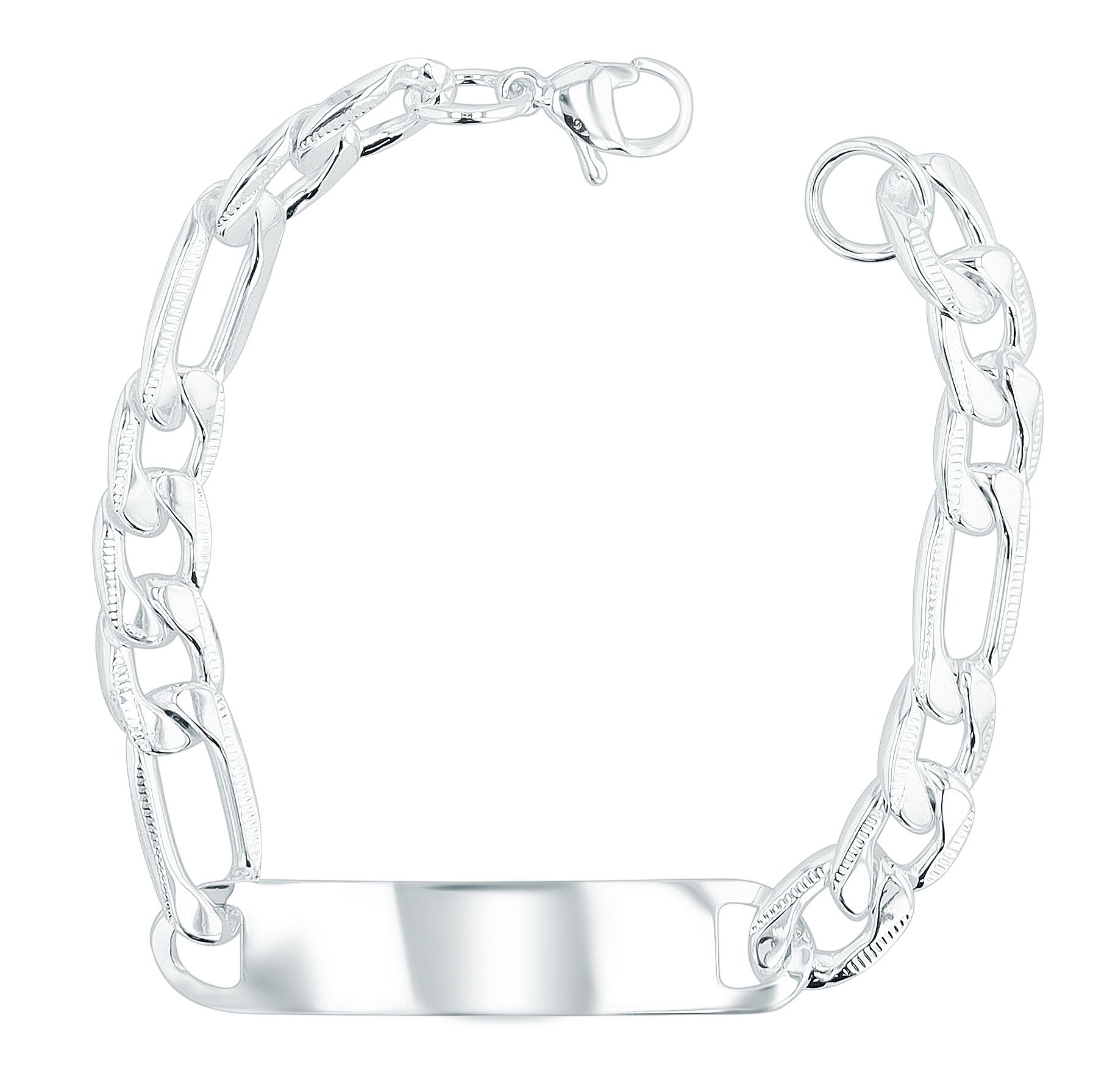 De Figaro armband van het merk Akzent is 21 cm lang, 9 mm breed en 2,5 mm dik - de perfecte combinatie van kracht en subtiliteit. Gemaakt van roestvrij staal belooft het niet alleen robuuste duurzaamheid, maar ook tijdloze schoonheid die de tand des tijds zal doorstaan. De speciale rangschikking van de kettingelementen wordt gekenmerkt door een afwisselende opeenvolging van langwerpige en ovale schakels, wat de armband een opvallende en toch elegante charme geeft. Gesloten met een karabijnsluiting, biedt de Figaro armband niet alleen een veilige houvast, maar is ook gemakkelijk te hanteren. Het graveerplaatje, 50 mm lang en 10 mm breed, biedt ruimte voor persoonlijke boodschappen, of het nu een naam, een datum of een betekenisvolle inscriptie is.