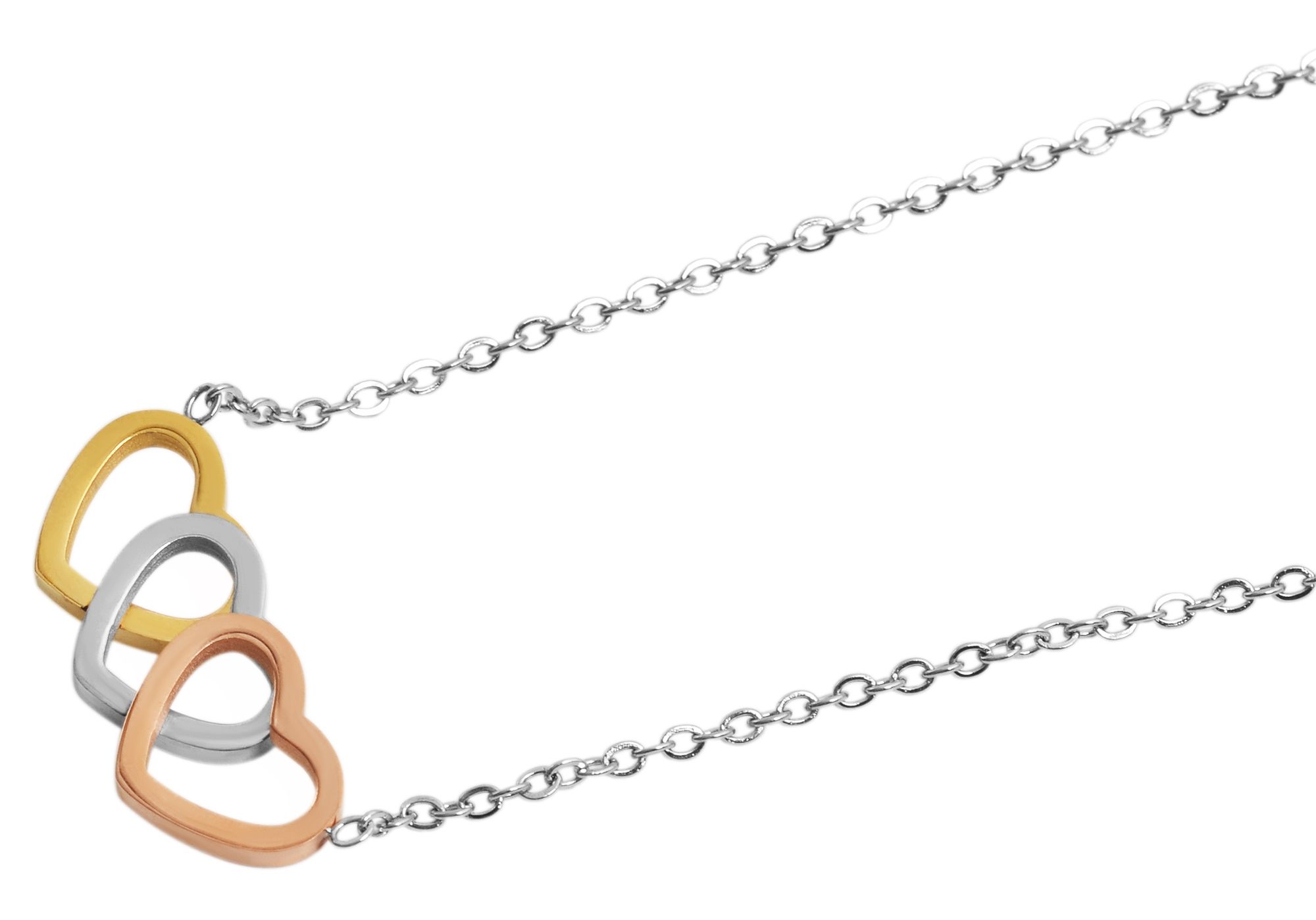 Productinformatie "Akzent Halskette mit Herzanhängern "Aurelia", Edelstahl, tricolor"