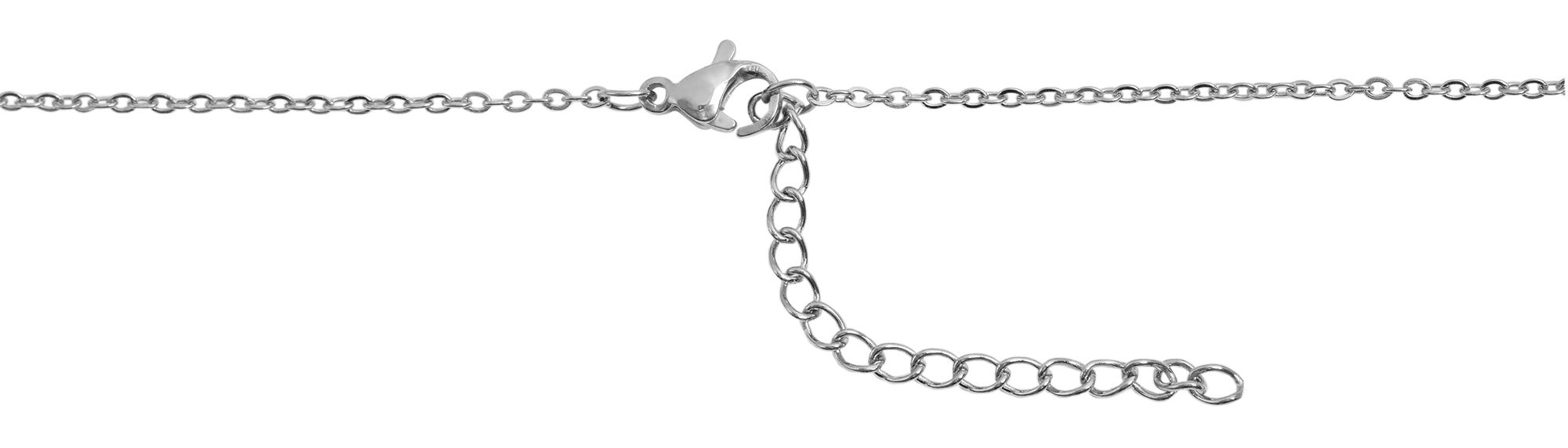 De ketting van het merk Akzent is gemaakt van roestvrij staal in een ankerpatroon. Aan de ketting is een hanger met drie hartjes bevestigd. De moderne sieradenketting kan worden geopend en gesloten met een karabijnsluiting, die ook van roestvrij staal is gemaakt. Aan één uiteinde van de ketting is ook een verlengkettinkje van 5 cm bevestigd, zodat je de lengte met maximaal 5 cm kunt variëren en de ketting aan elke outfit kunt aanpassen. De afmetingen komen voort uit een lengte van 43 cm en een dikte van 1 mm. De hanger heeft een lengte van 10 mm, een breedte van 25 mm en een dikte van 4 mm.