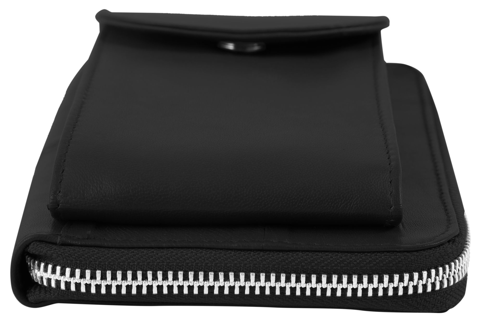 Productinformatie "Akzent Handyumhängetasche mit Geldbörse, Echtleder, geeignet für iPhone 15, schwarz"