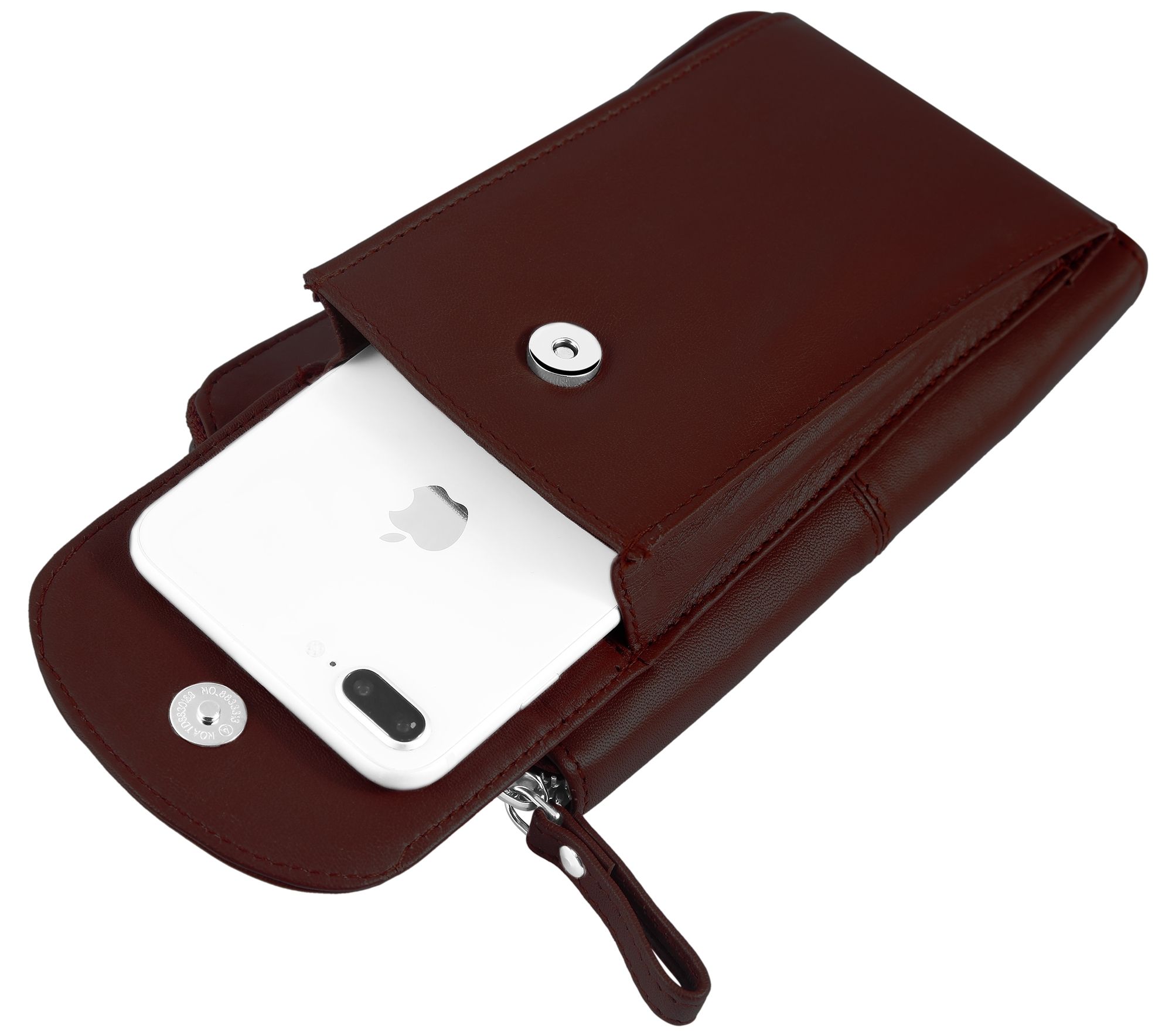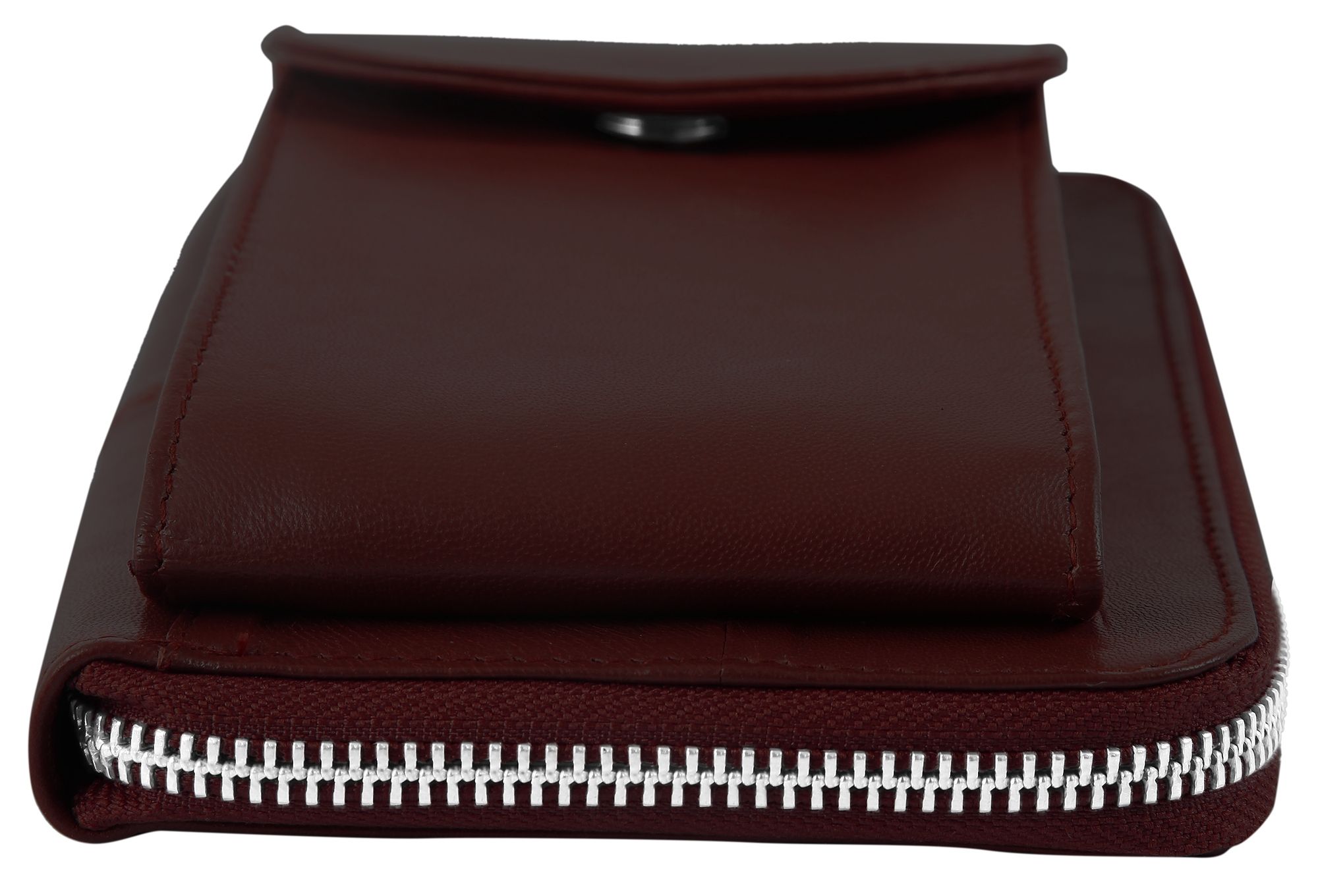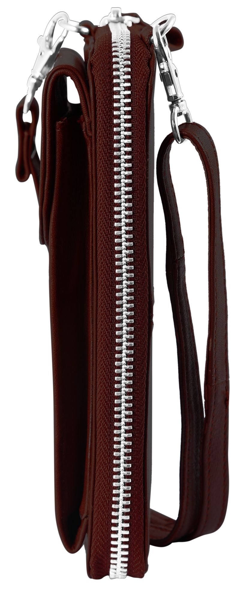 Productinformatie "Akzent Handyumhängetasche mit Geldbörse aus Echtleder, geeignet für iPhone 15, bordeaux"