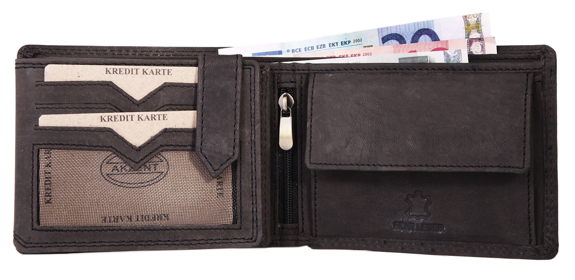 Accent herenportemonnee van echt leer in zwart. Formaat 13 x 10 cm.