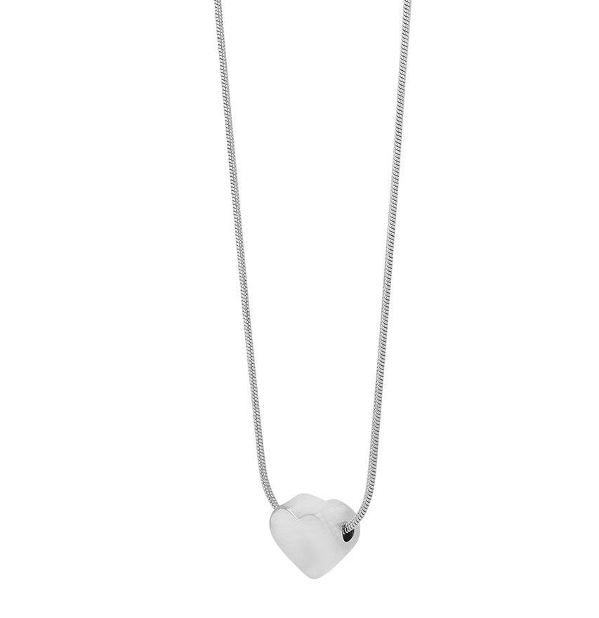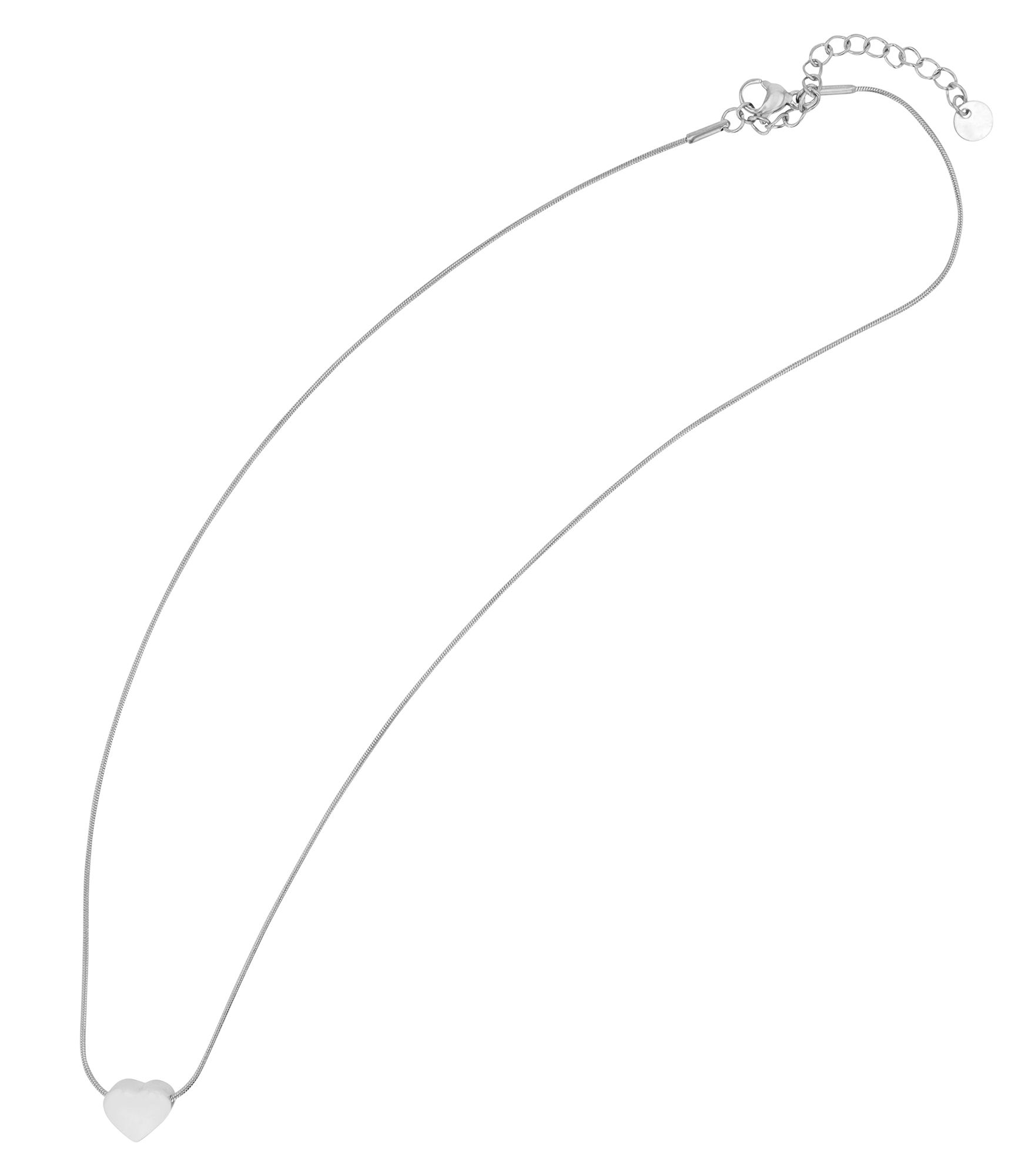 Aan de ketting hangt een glanzende hartvormige hanger van 9 x 10 mm. De hanger is zo ontworpen dat er ruimte is voor persoonlijke, ingewikkelde gravures. De ketting is bevestigd met een betrouwbare karabijnsluiting, waardoor hij niet alleen gemakkelijk om- en afgedaan kan worden, maar ook stevig vastzit.