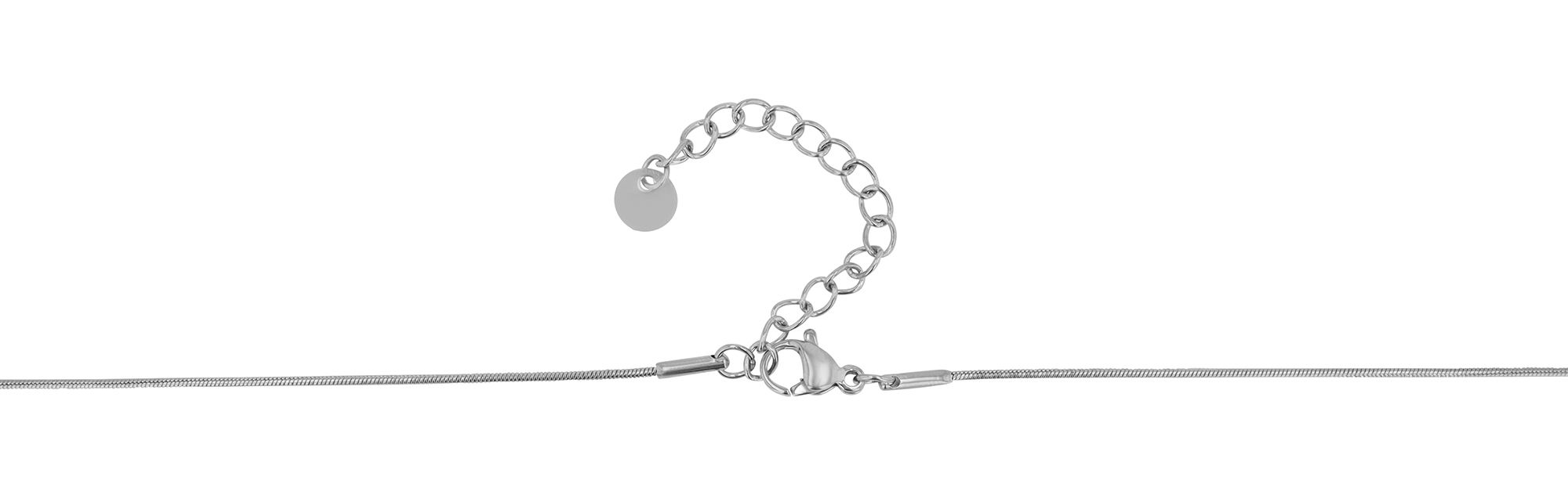 Deze ketting is gemaakt van hoogwaardig roestvrij staal en is verkrijgbaar in twee versies: zilver- of goudkleurig. Beide versies weerspiegelen de schoonheid en duurzaamheid van het materiaal en bieden een breed scala aan stylingopties. De ketting is 43 cm lang en heeft een extra verlenging van 5 cm zodat de pasvorm kan worden aangepast aan de individuele stijl en comfort. Met een dikte van slechts 1 mm is de ketting fijn en elegant, ideaal voor dagelijks gebruik en voor speciale gelegenheden.