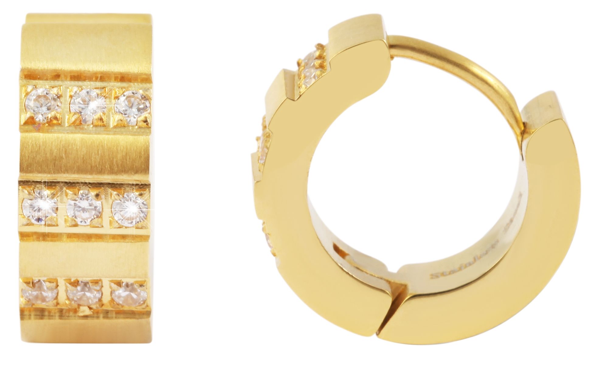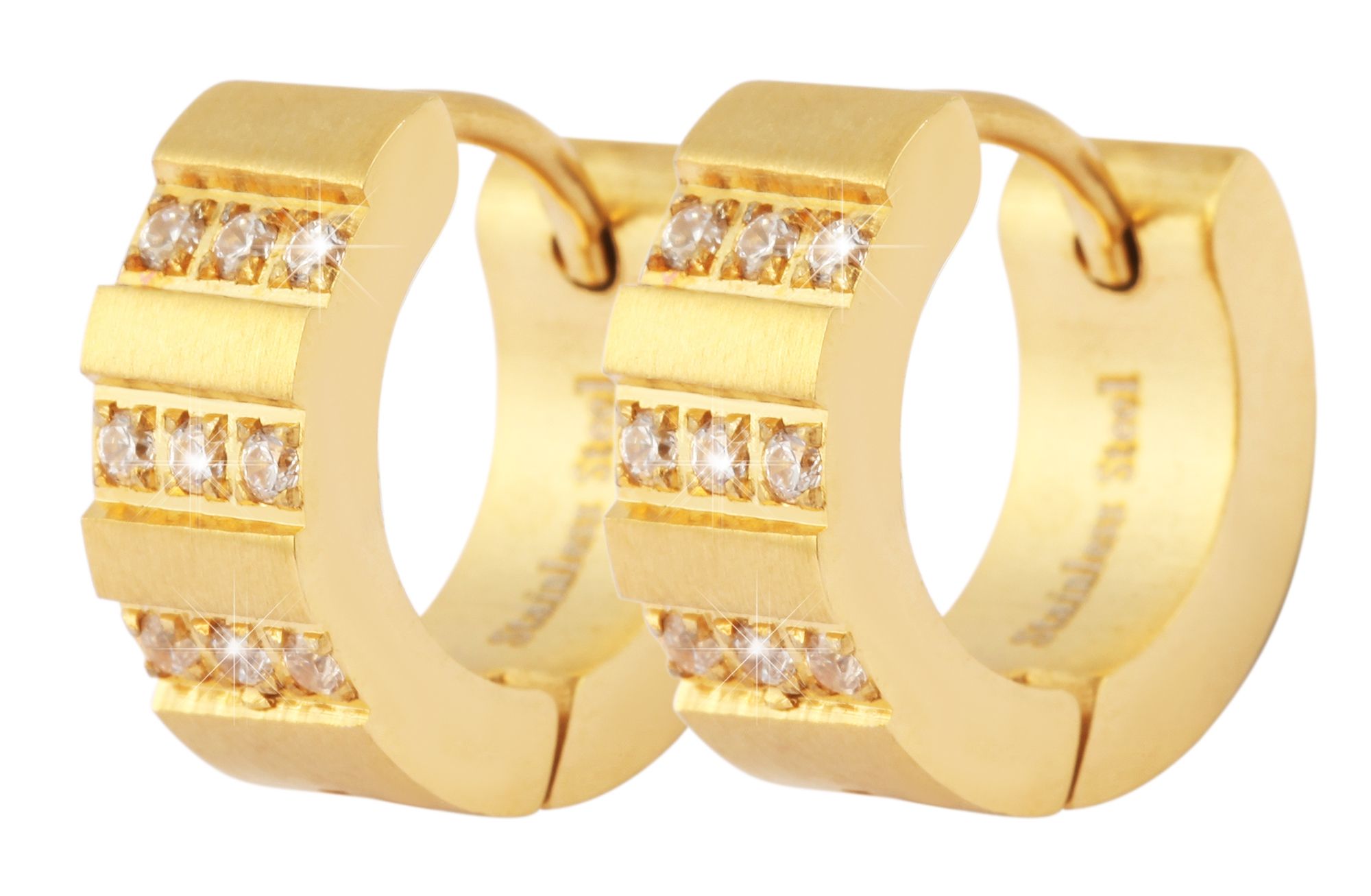 Productinformatie "Akzent Klapp-Creolen aus Edelstahl, Similibesatz, goldfarben"