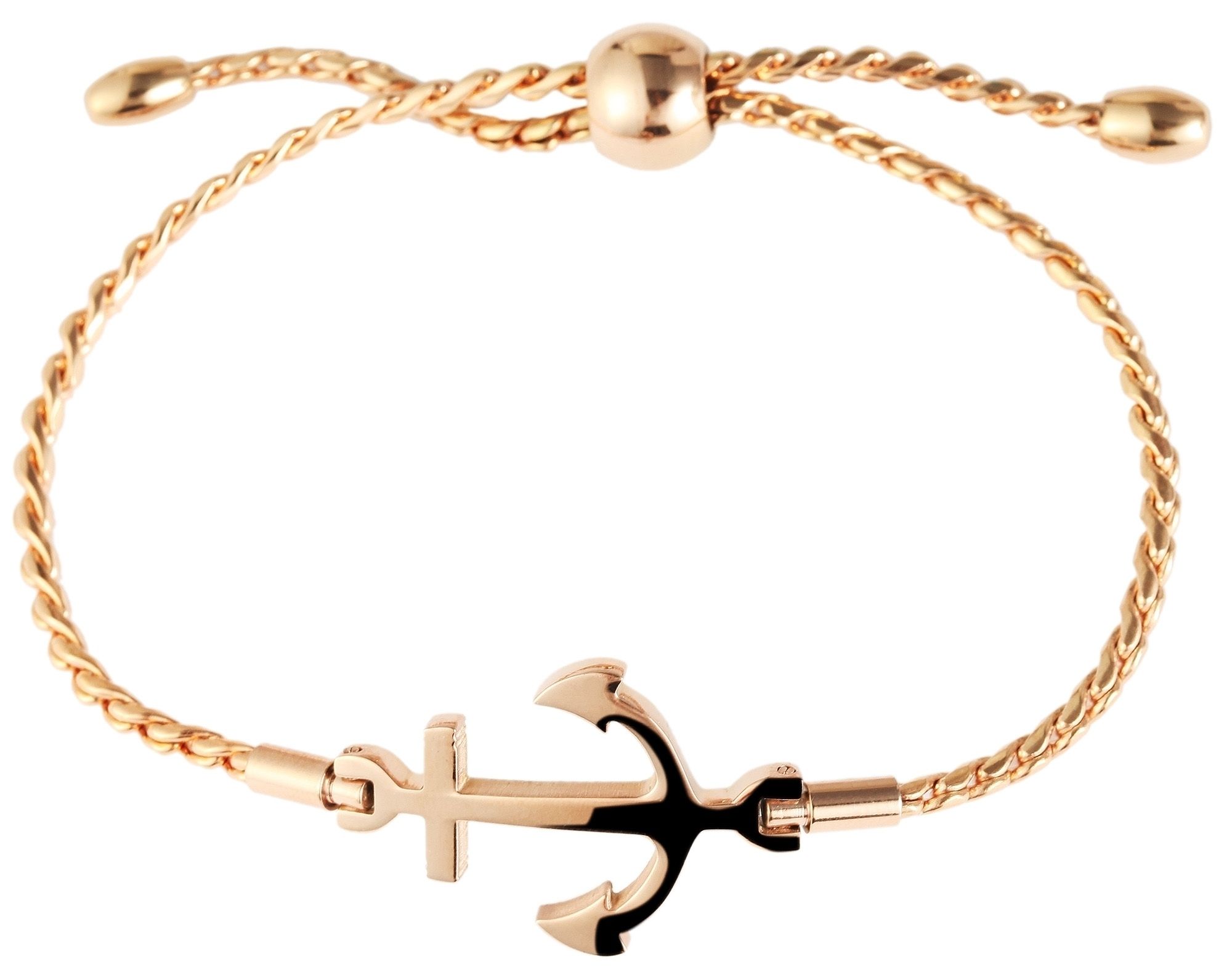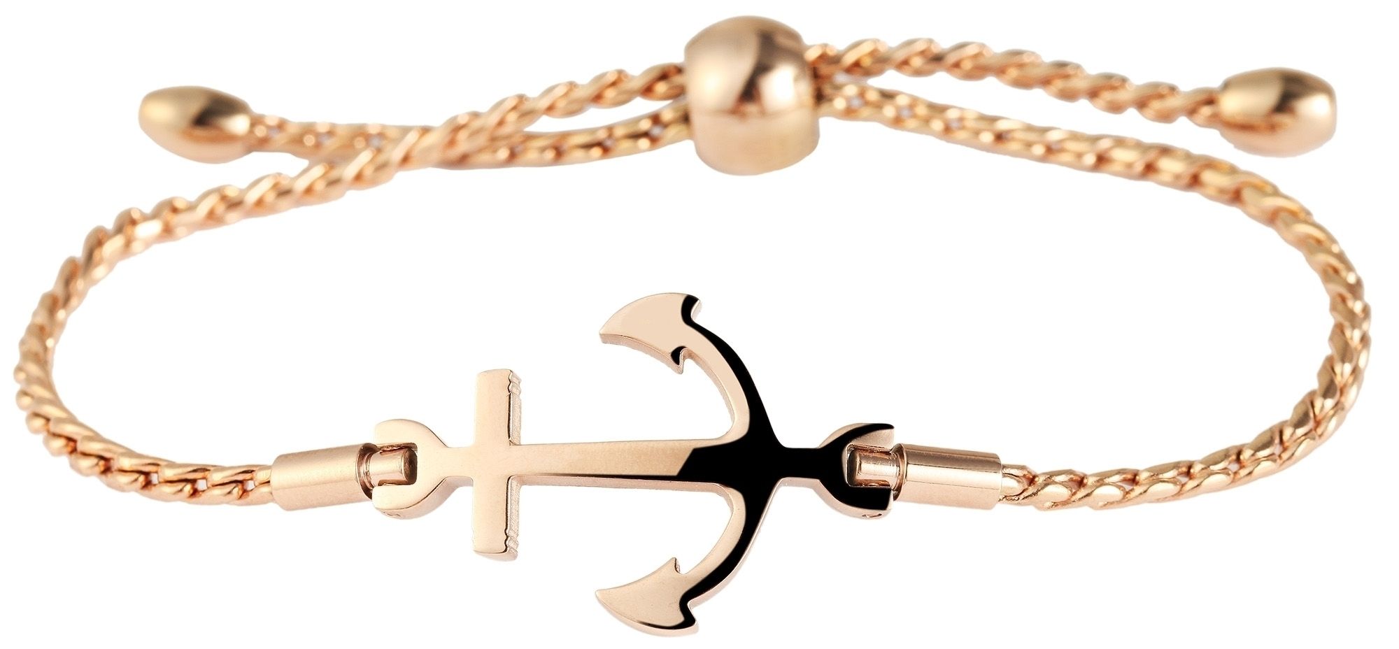 De roségoudkleurige koordarmband van het merk Akzent is gemaakt van roestvrij staal. Het heeft een matte en glanzende roestvrijstalen afwerking. Hij is 22,5 cm lang. De eenvoudige armband kan worden geopend en gesloten met een treksluiting, die ook van roestvrij staal is gemaakt. Het anker in het midden van de armband is een opvallend kenmerk. De diameter van de armband is 80 mm. De breedte is 2 mm.