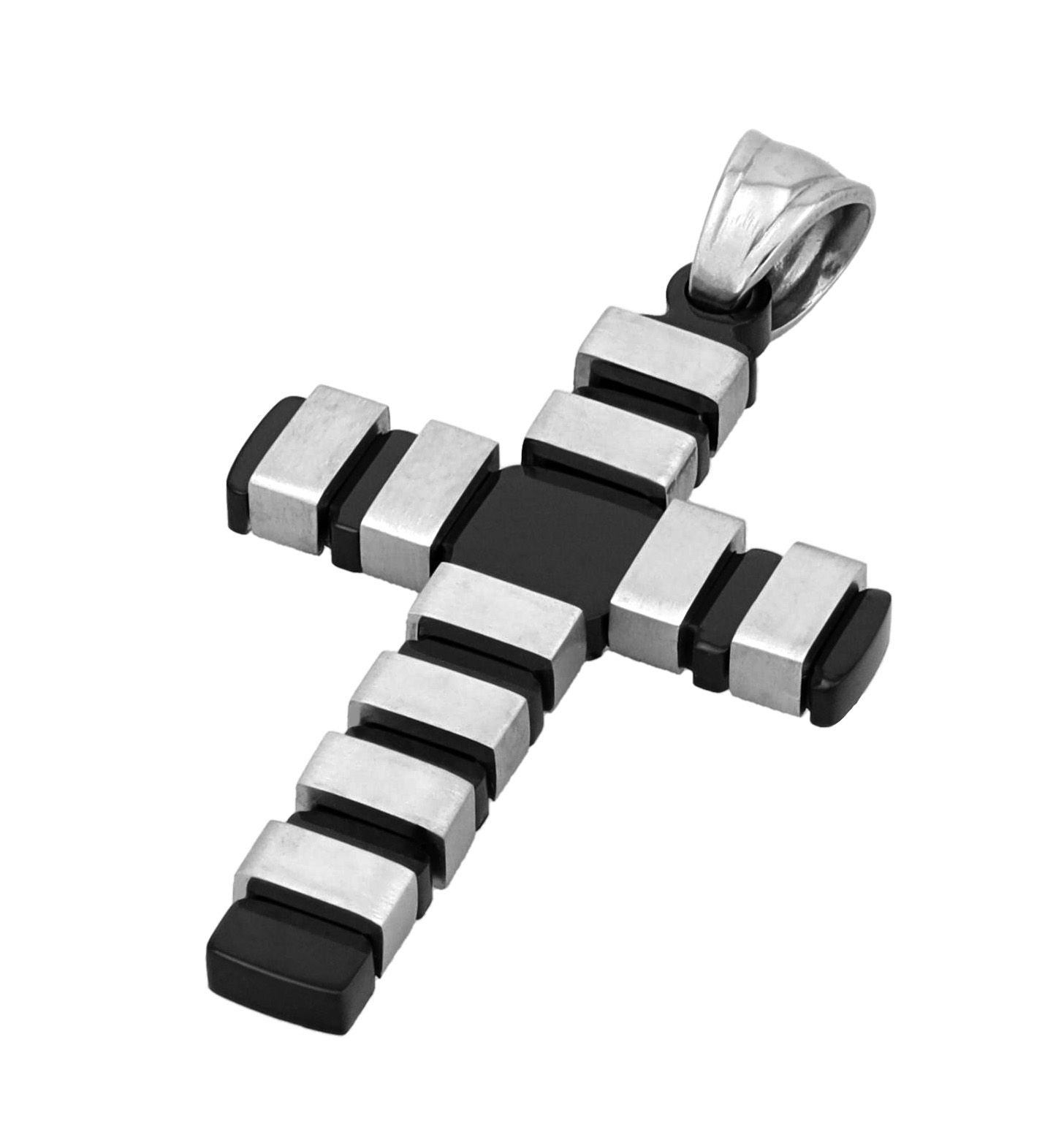 Productinformatie "Akzent Kreuz "Arden", Edelstahlanhänger, matte & polierte Elemente, bicolor (schwarz/silberfarben)"