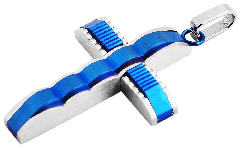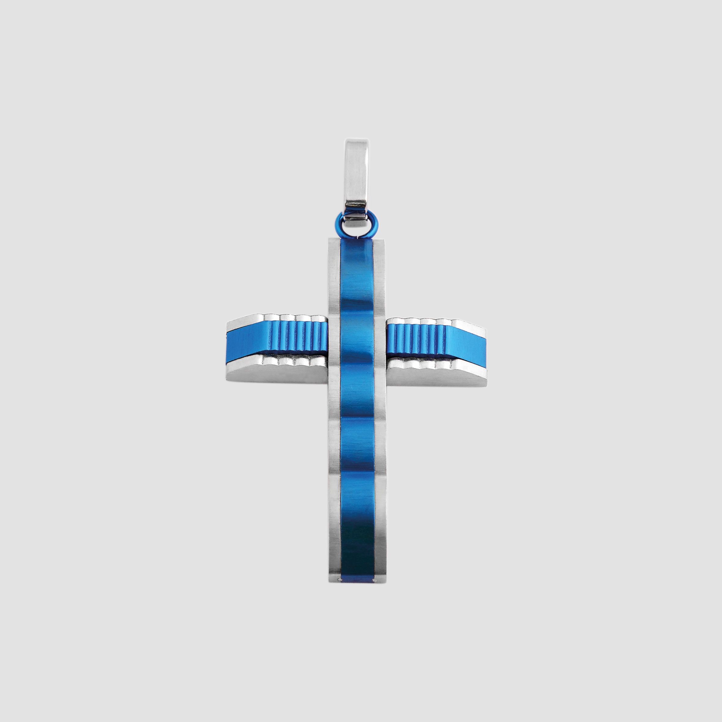 Productinformatie "Akzent Kreuz Edelstahlanhänger mit IP Beschichtung, silberfarbig und blau"