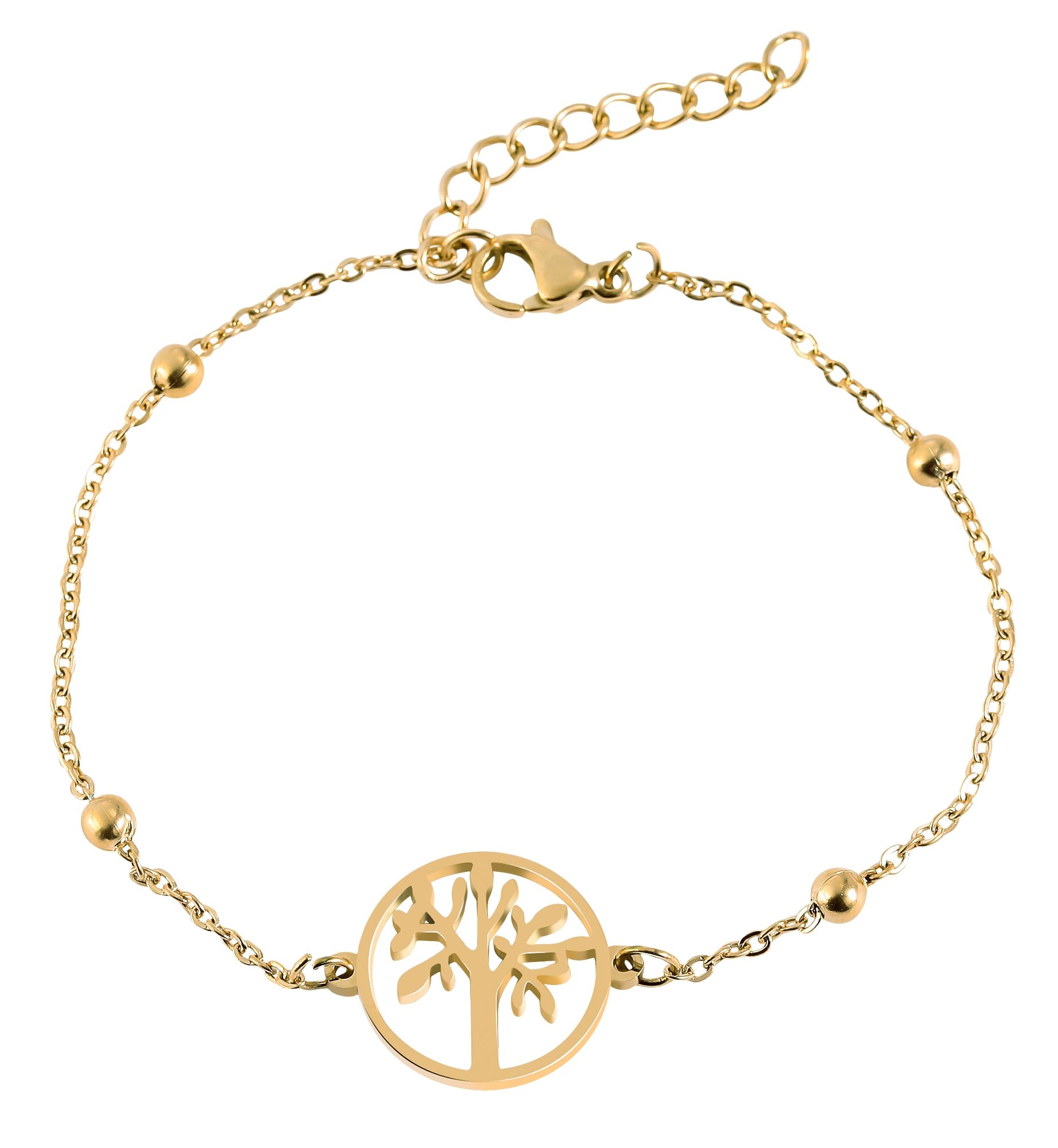 Productinformatie "Akzent Lebensbaum Armband aus Edelstahl, Ionenplattiert, goldfarben, 17+3cm"