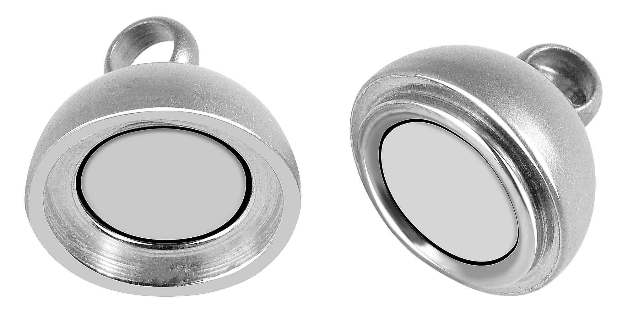 De magneetsluiting van het merk Akzent is gemaakt van roestvrij staal en is verkrijgbaar in verschillende maten. Het oppervlak is mat en zilverkleurig. De bolvormige sluiting heeft links en rechts een open oogje waaraan elke ketting kan worden bevestigd. Dit type sluiting is erg praktisch en gemakkelijk te gebruiken, omdat de magnetische uiteinden samenkomen door ze simpelweg tegen elkaar aan te houden. De diameter van de sluiting varieert tussen 6 mm, 8 mm en 10 mm, afhankelijk van het model.