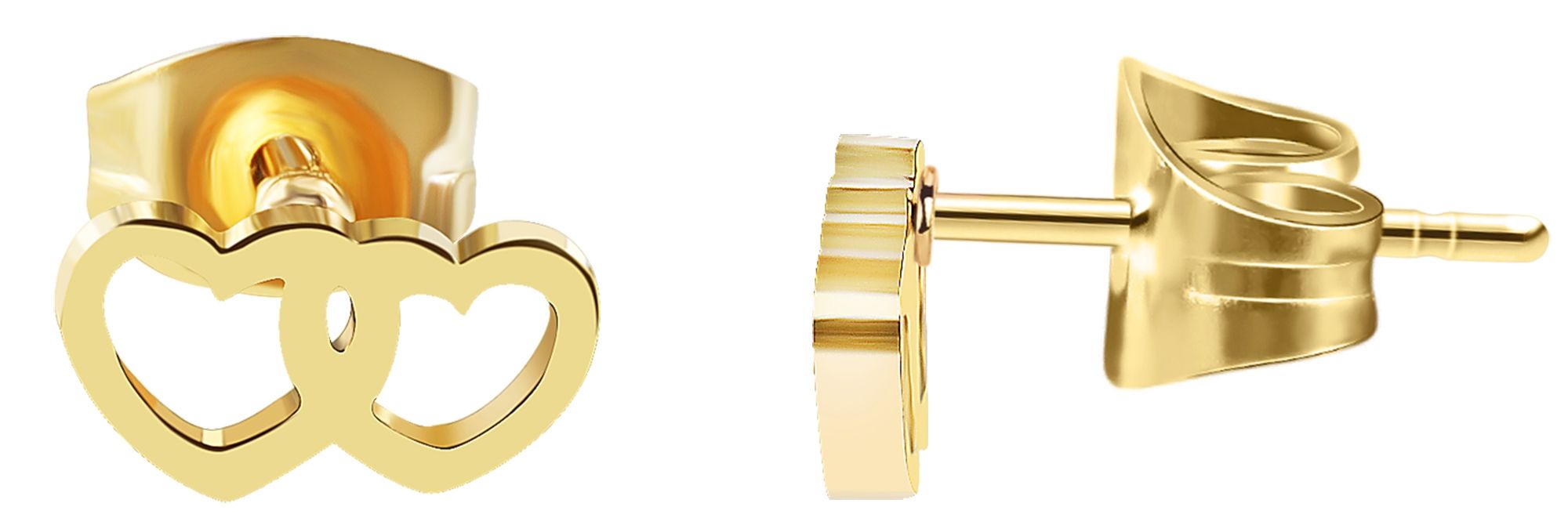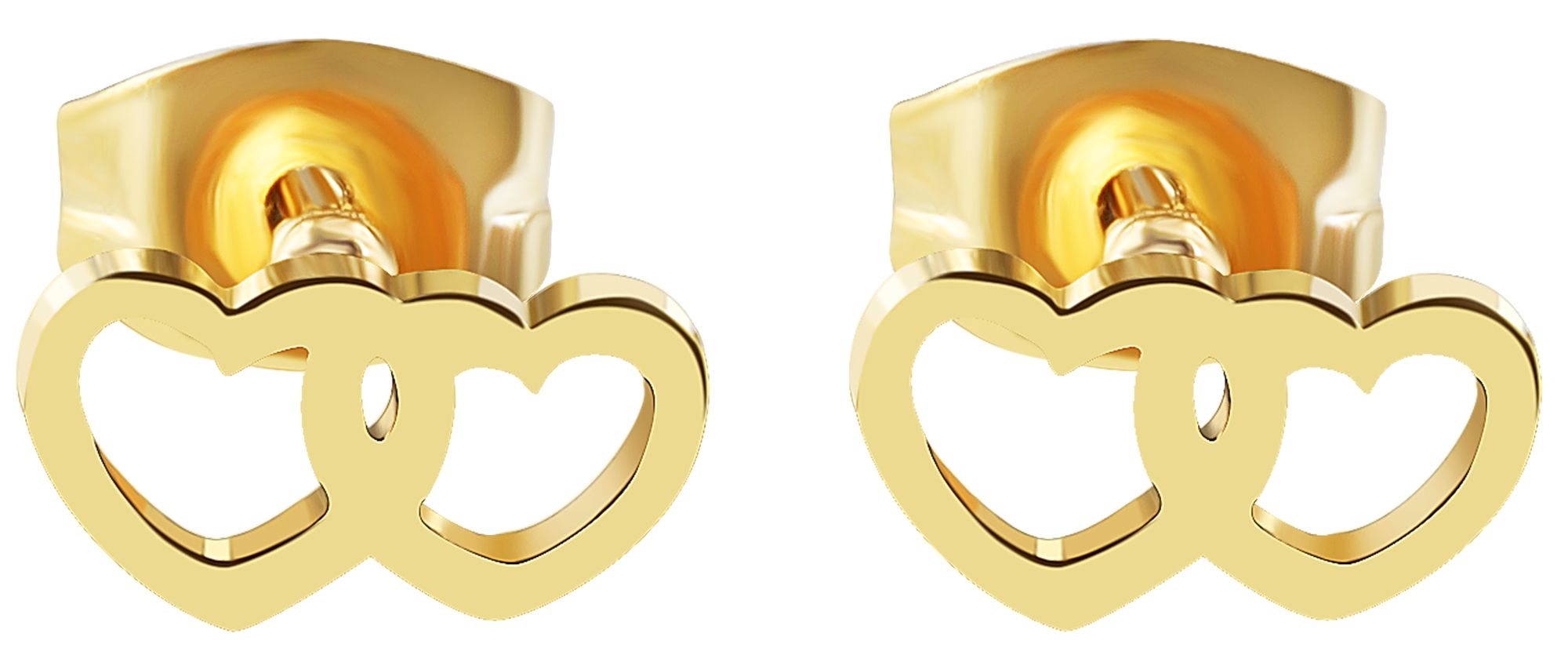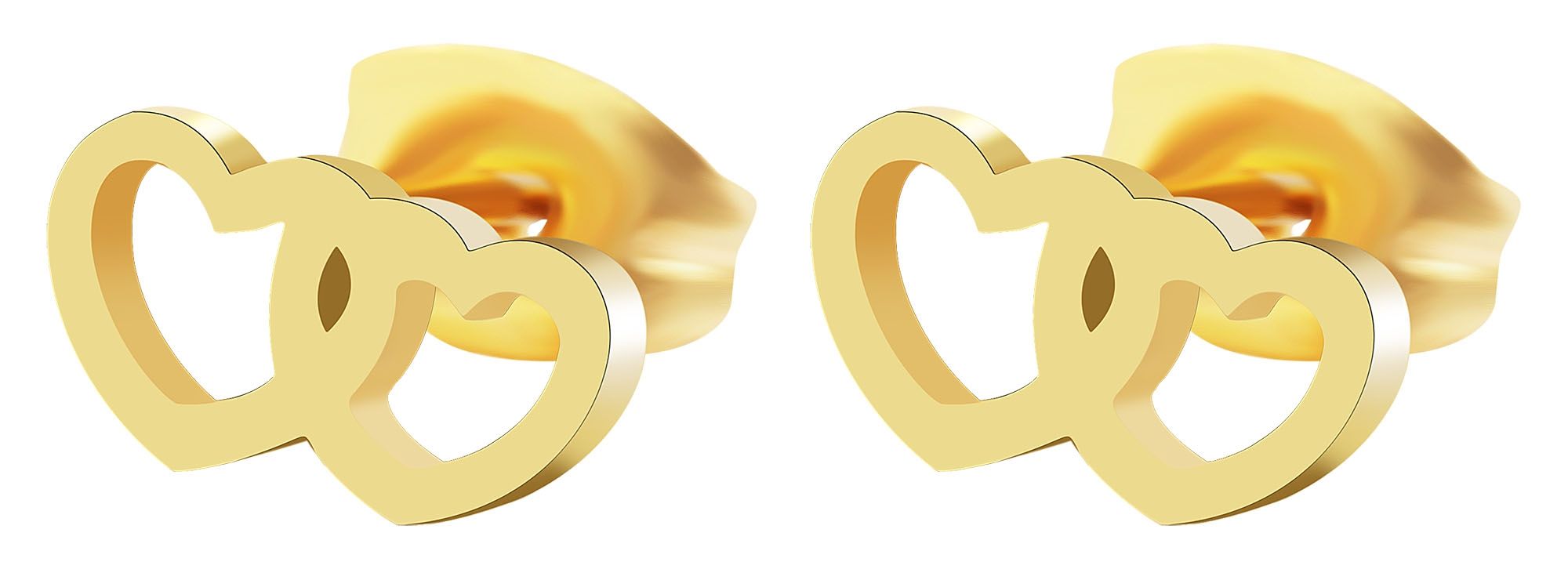 Productinformatie "Akzent Ohrstecker, Edelstahl, Doppelherz, goldfarben"