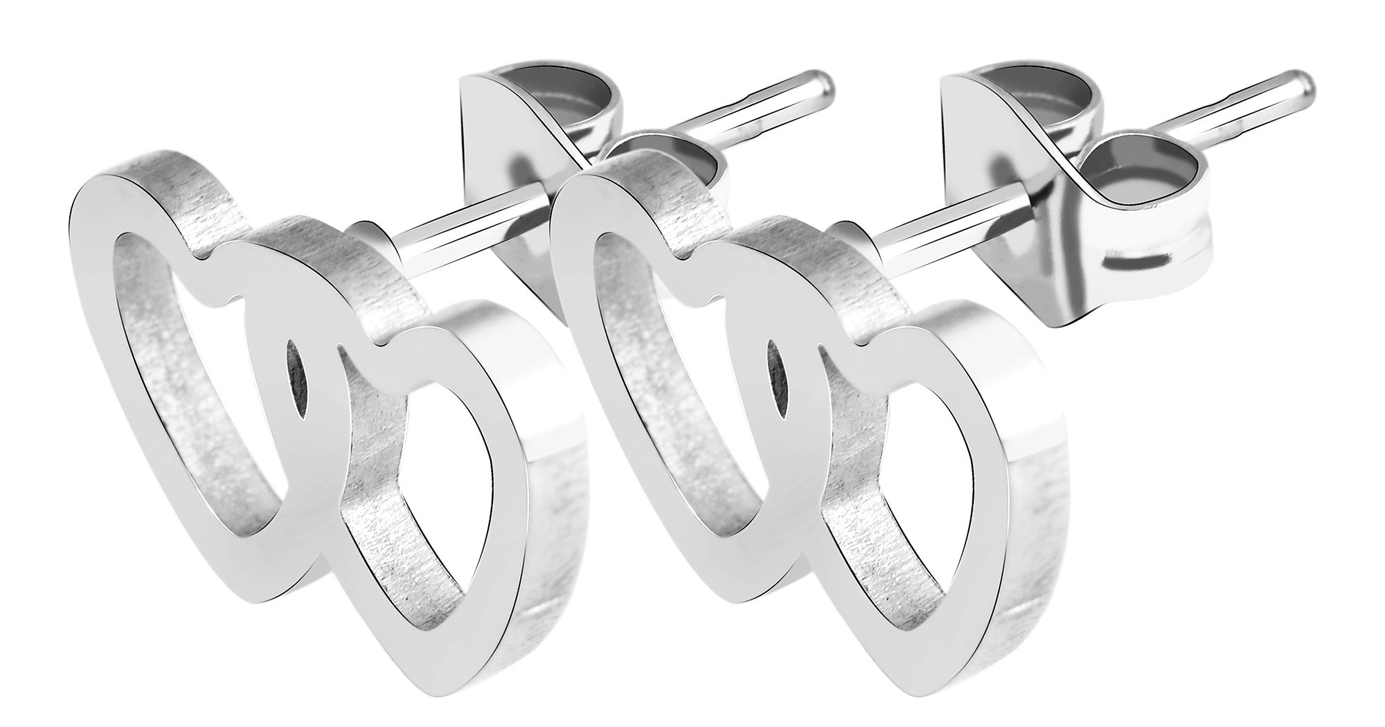 Productinformatie "Akzent Ohrstecker, Edelstahl, Doppelherz, silberfarben"