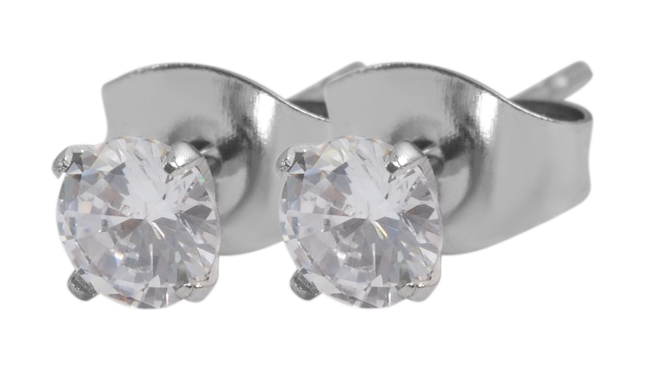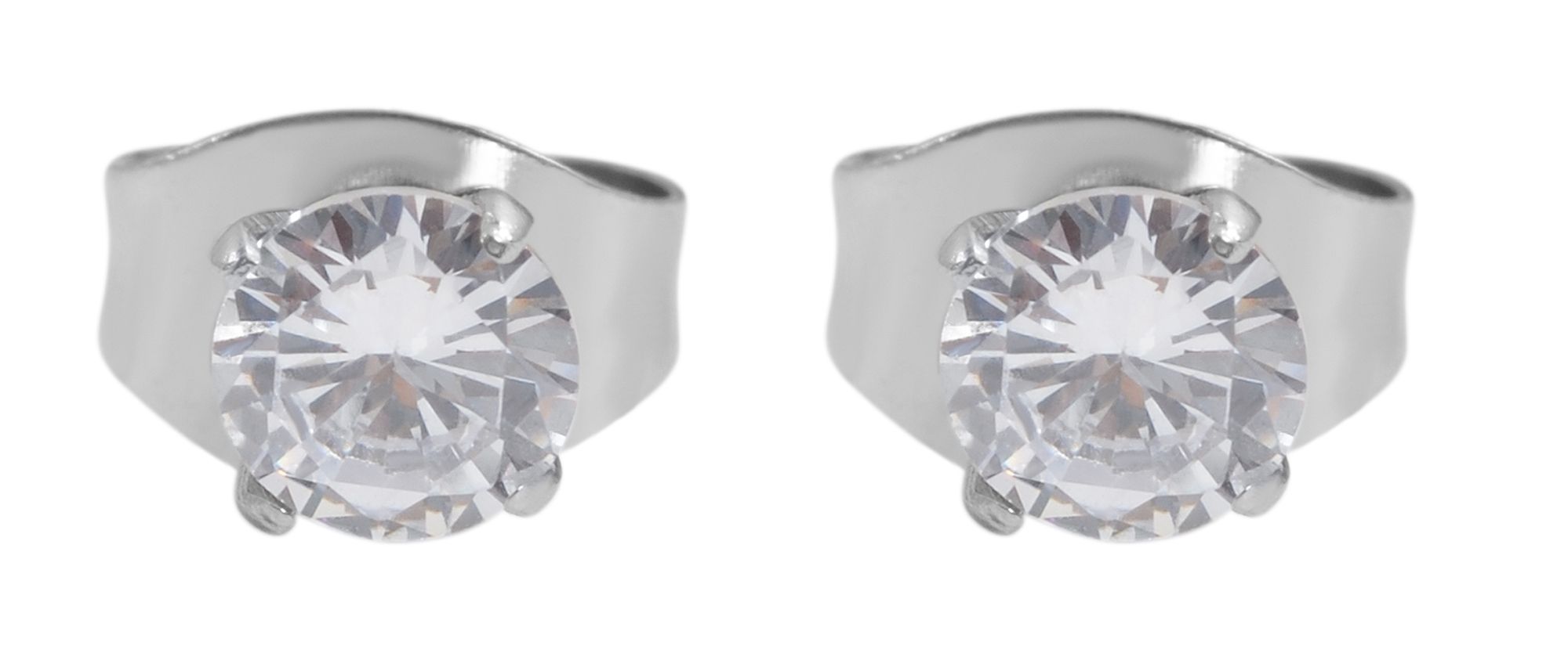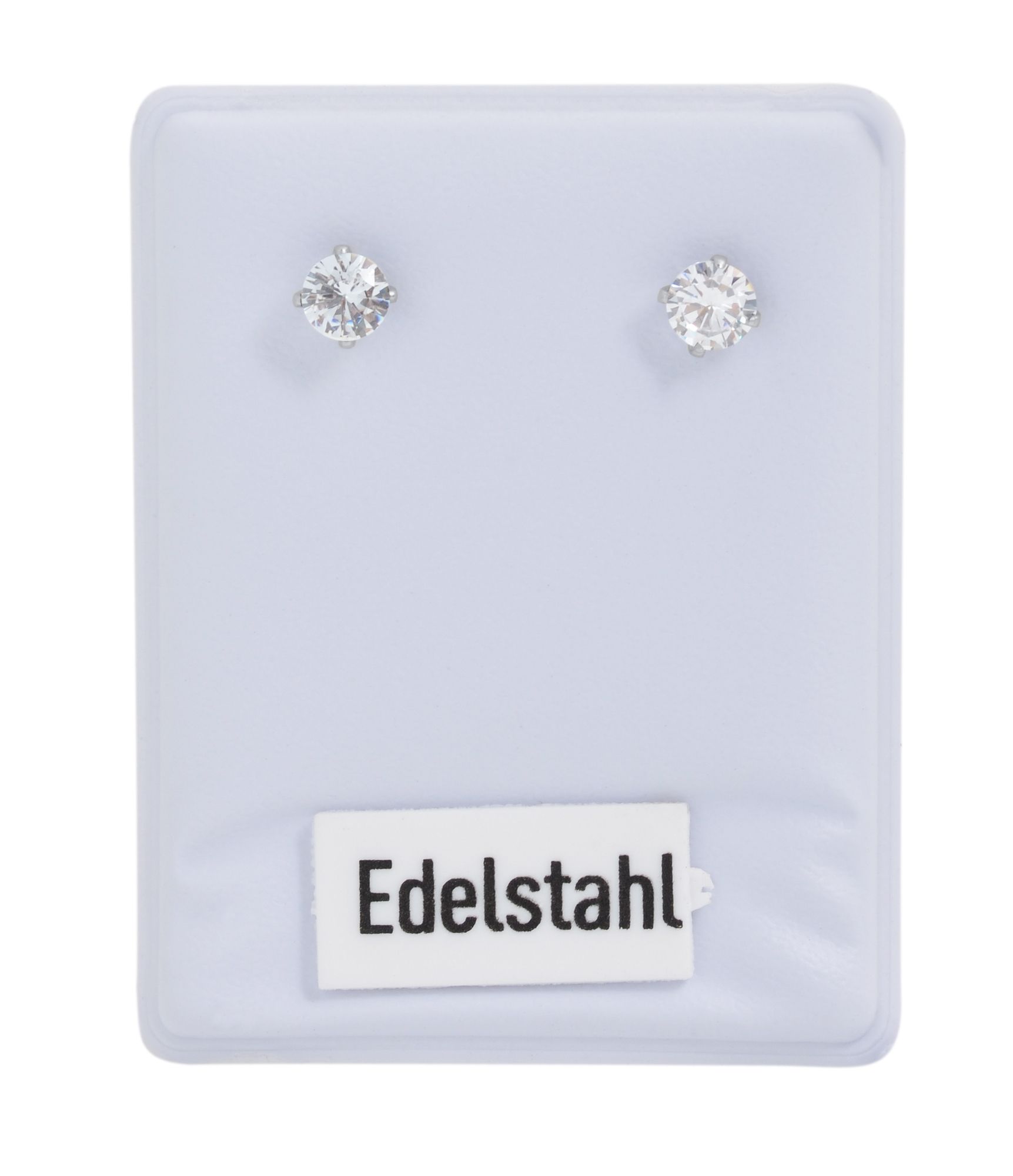 Productinformatie "Akzent Ohrstecker aus Edelstahl mit Zirkonia in Krappenfassung"