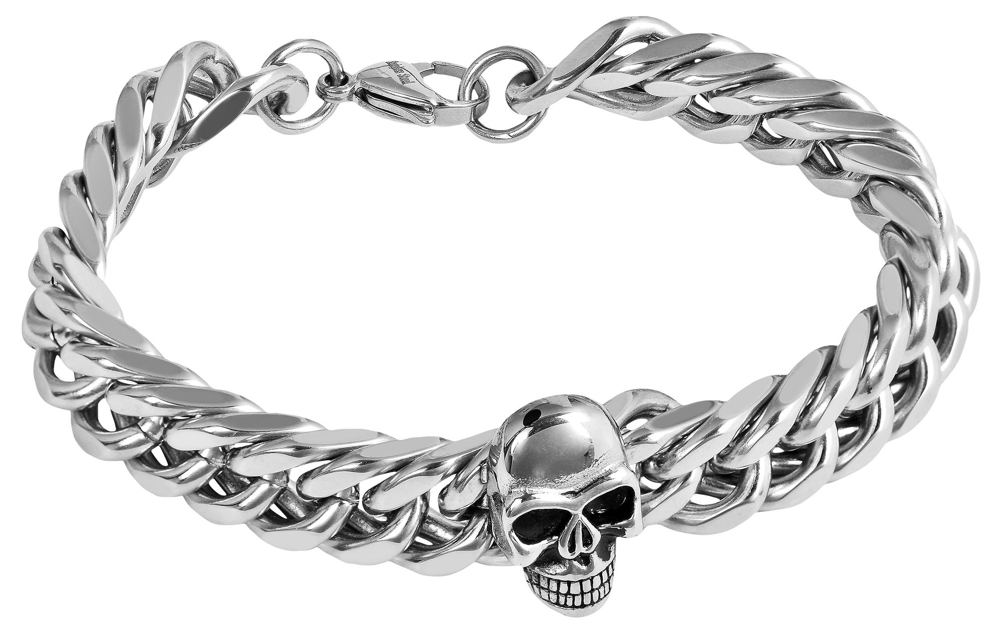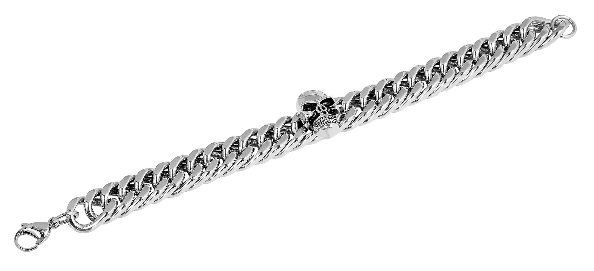 Productinformatie "Akzent Panzerarmband aus Edelstahl, Totenkopf, silberfarben, 22 cm"