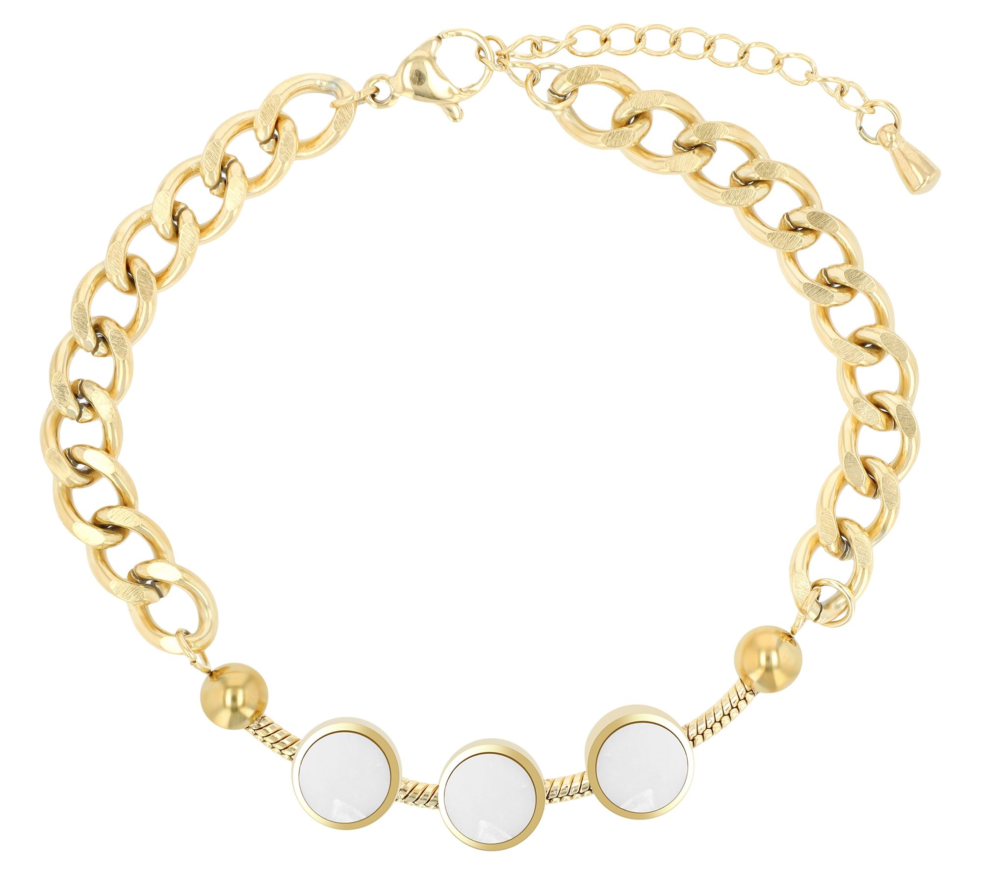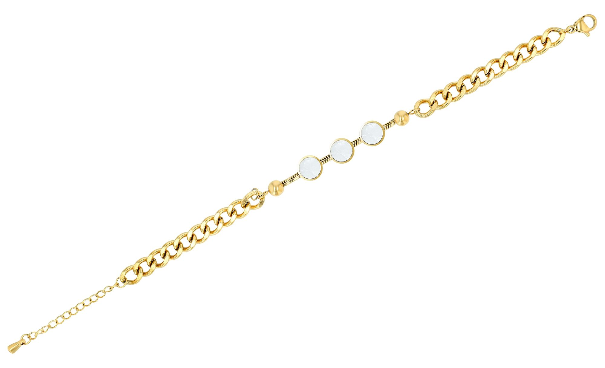 Productinformatie "Akzent Panzerarmband mit Perlmuttelementen, Edelstahl, ionenplattiert, goldfarben"