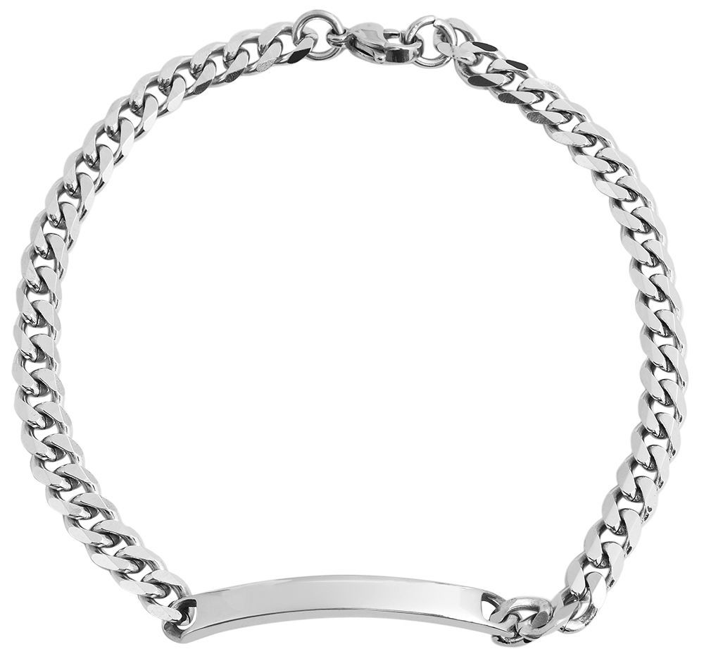 De zilverkleurige gepantserde armband van het merk Akzent is gemaakt van roestvrij staal en heeft een graveerplaatje van 3,5 cm in het midden. De afmetingen komen voort uit een totale lengte van 22,5 cm, een breedte van 0,6 cm en een materiaaldikte van 2,5 mm. Het graveerplaatje is 2 mm dik en ook 0,6 cm breed. De massieve armband kan worden geopend en gesloten met een zilverkleurige karabijnsluiting, die ook van roestvrij staal is gemaakt. Het oppervlak van dit opvallende sieraad is hoogglans gepolijst. Het graveerplaatje, of identificatieplaatje, is geschikt om te graveren. Een gepersonaliseerd sieraad is een uitstekend cadeau.
