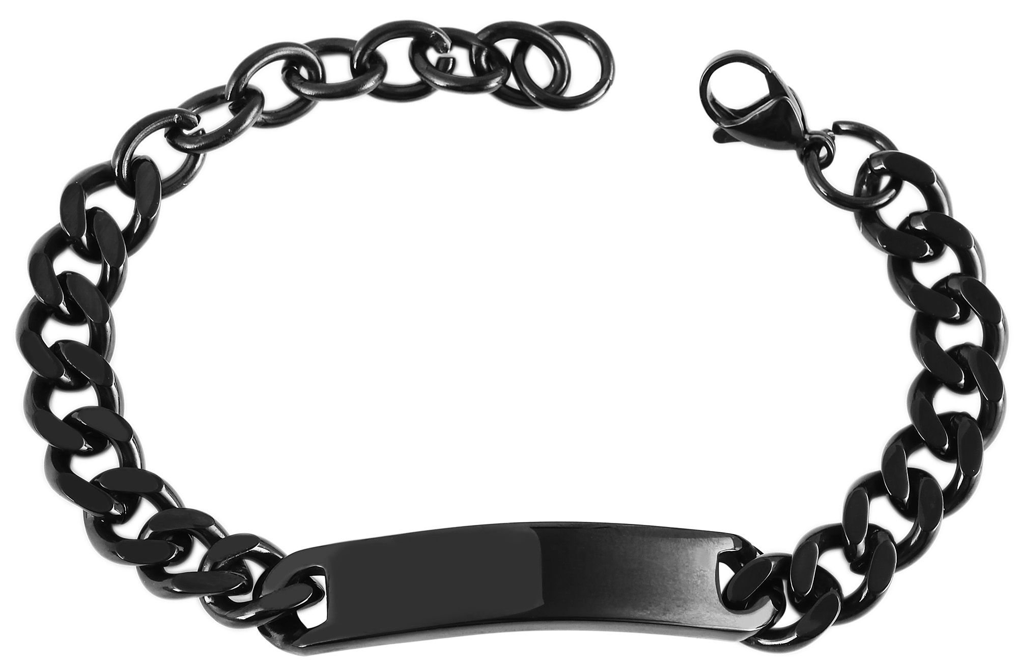 De armband in het populaire curb chain-design is gemaakt van roestvrij staal. Het materiaal is robuust, roestvrij en belooft een lange levensduur. De vlakke plaatsing van de kettingstructuur zorgt voor een aangenaam draagcomfort. De gepantserde armband heeft een 47 mm lang en 9 mm breed graveerplaatje in het midden. Dit kan worden gegraveerd met elk type gravure, zodat de armband een volledig individueel sieraad kan worden. De graveerarmband heeft ook een praktische karabijnsluiting die gemakkelijk geopend en gesloten kan worden. De totale afmeting van de armband is 17 cm lang + een verlengmogelijkheid tot 5 cm, 10 mm breed en 2,5 mm dik.