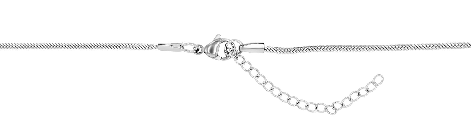 De zilverkleurige ketting van het merk Akzent is gemaakt van roestvrij staal in een slangenpatroon en is 45 cm lang. De materiaaldikte is 2 mm. Aan één uiteinde van de ketting is ook een verlengketting van 5 cm bevestigd. Hierdoor is het mogelijk om de lengte tot 5 cm te variëren en het sieraad aan elke outfit aan te passen. De eenvoudige slangenketting kan worden geopend en gesloten met een zilverkleurige karabijnsluiting, die ook van roestvrij staal is gemaakt.