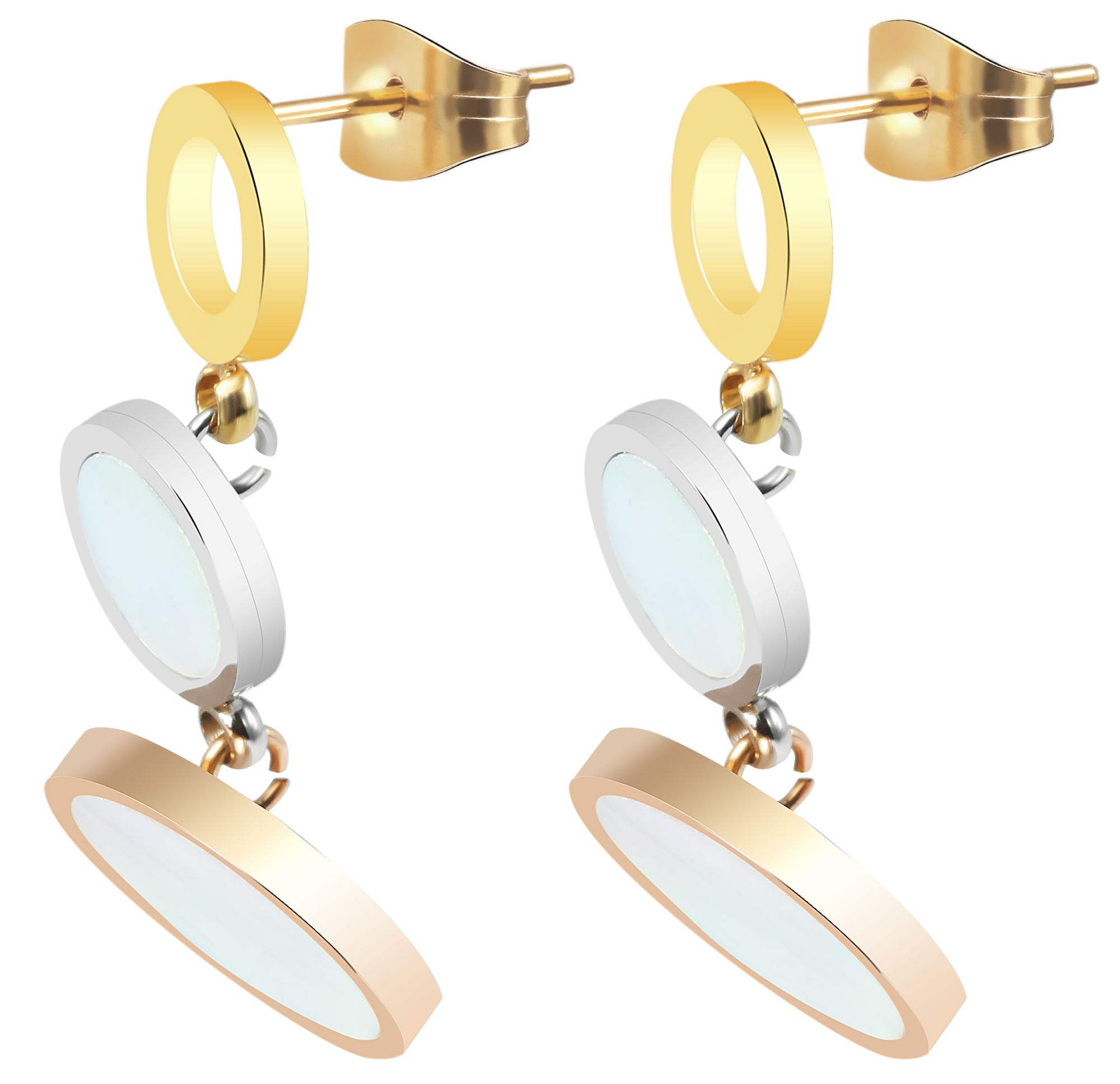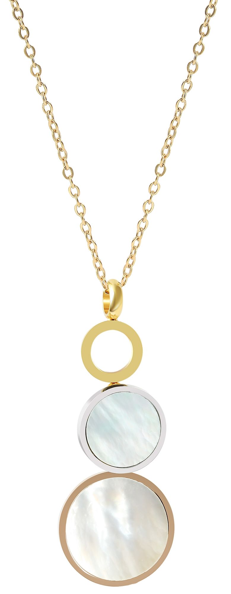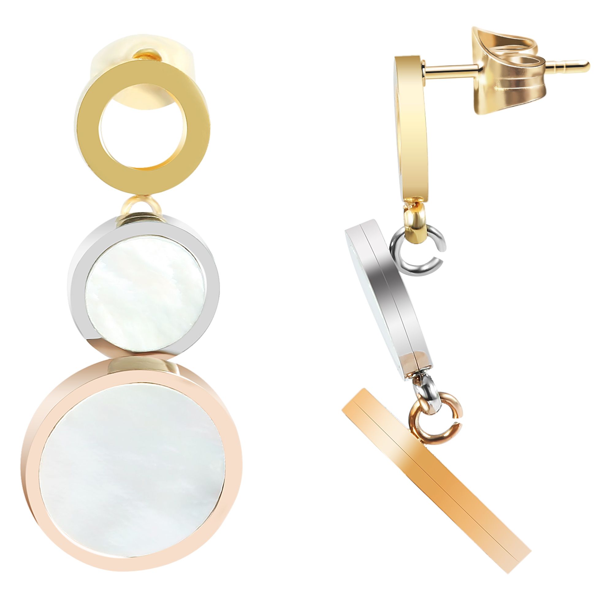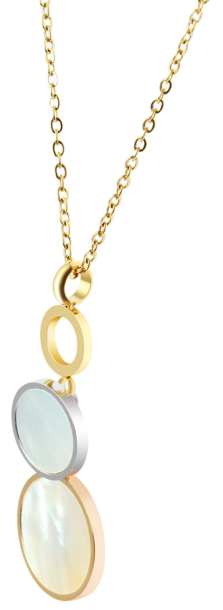 Productinformatie "Akzent Schmuckset, Halskette und Ohrstecker, Edelstahl, Perlmutt, tricolor"