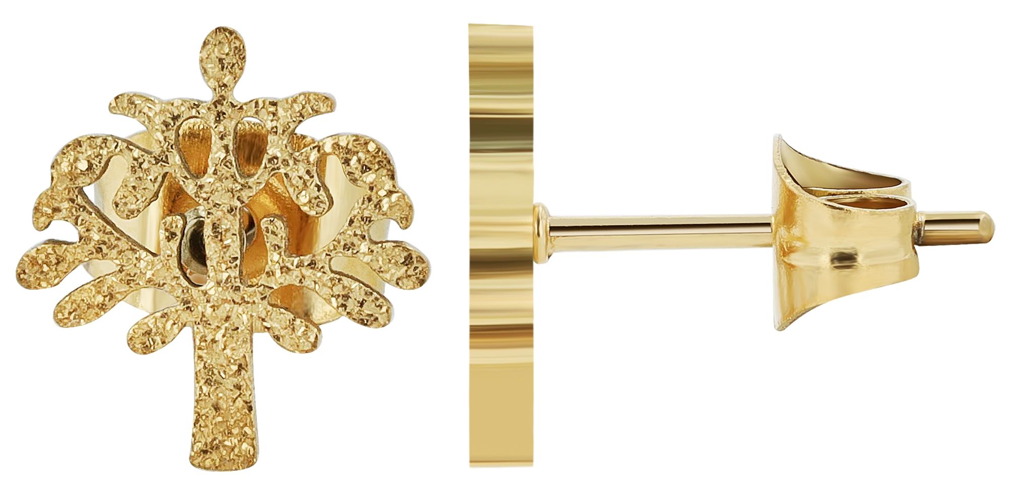Productinformatie "Akzent Schmuckset "Lea" aus Edelstahl, Halskette & Ohrstecker mit Lebensbaum, sandgestrahlt, goldfarben"