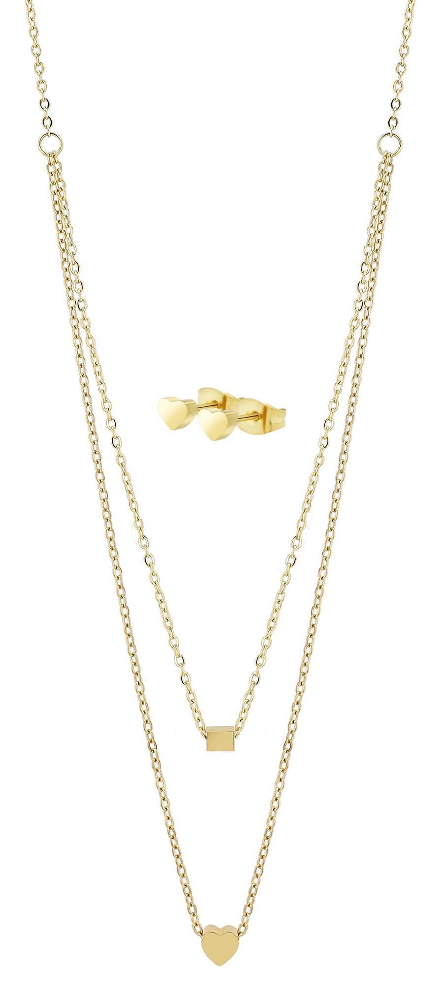 Productinformatie "Akzent Schmuckset "Vilda", Layering Kette und Ohrstecker, Edelstahl, goldfarben"