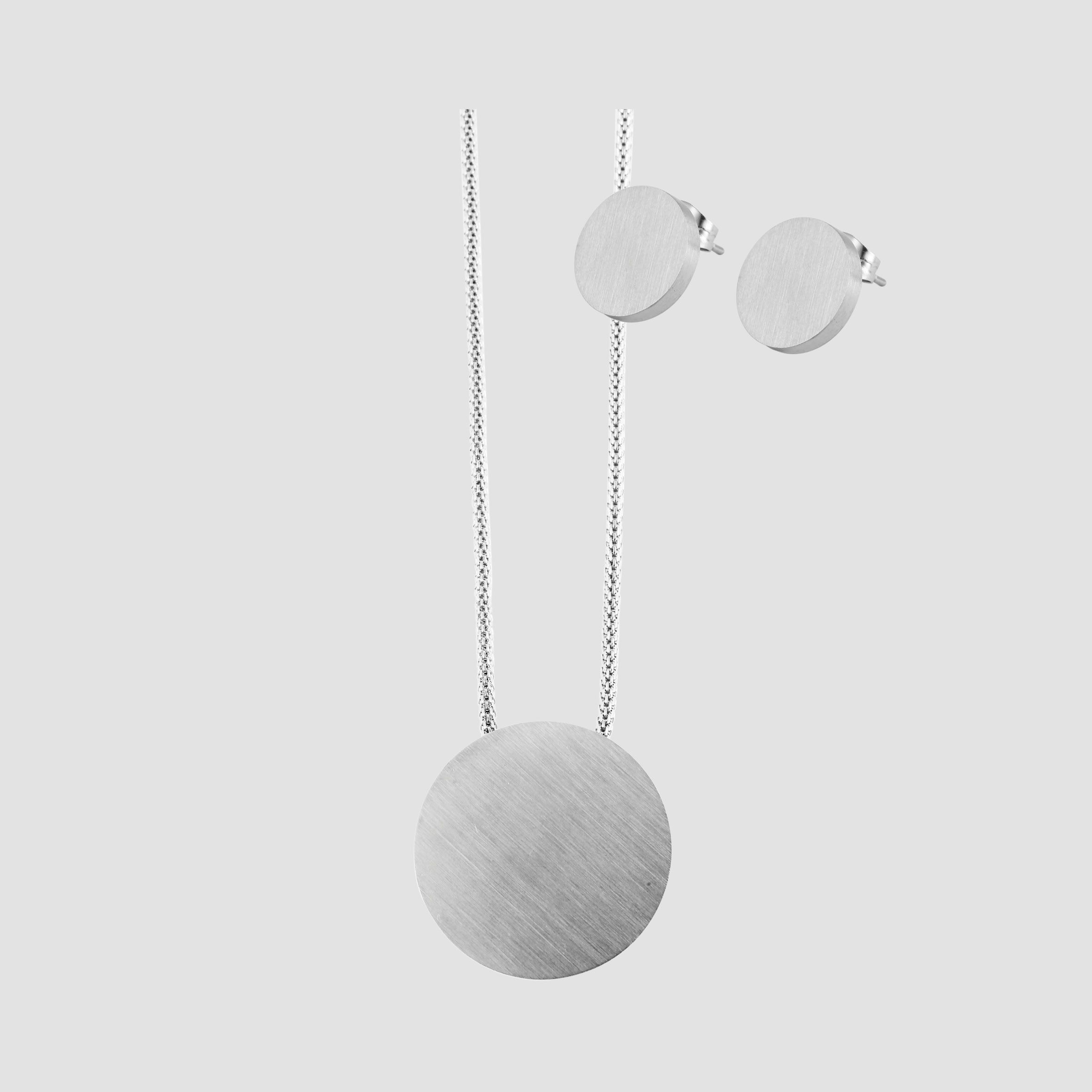 De zilverkleurige sieradenset van het merk Akzent is gemaakt van roestvrij staal en bestaat uit oorstekers en een ketting. De ankerketting is 50 cm lang, 1 mm breed en 1 mm dik. Aan het uiteinde van de ketting is ook een verlengkettinkje van 3 cm bevestigd, zodat je de lengte met maximaal 3 cm kunt variëren en de ketting aan elke outfit kunt aanpassen. De ketting kan worden geopend en gesloten met een stevige roestvrijstalen karabijnhaak. De ronde hanger aan de ankerketting kan worden gegraveerd en heeft een diameter van 29 mm. De materiaaldikte is 2 mm. De bijpassende oorstekers, die ook rond zijn, hebben een diameter van 10 mm en een materiaaldikte van 2 mm. De comfort oorknopjes, die worden geleverd met een siliconen plaatje, geven extra steun aan de oorbellen.