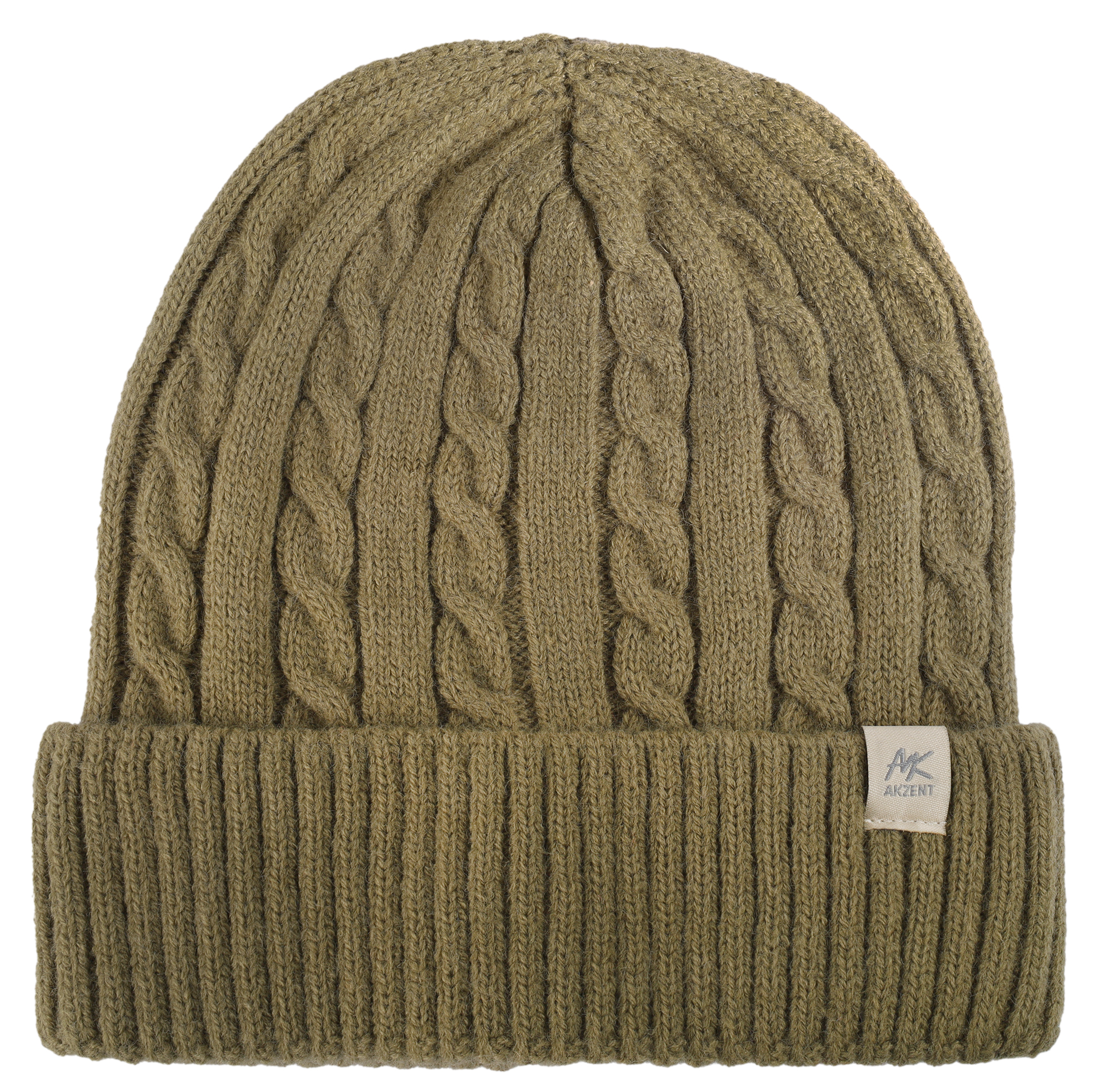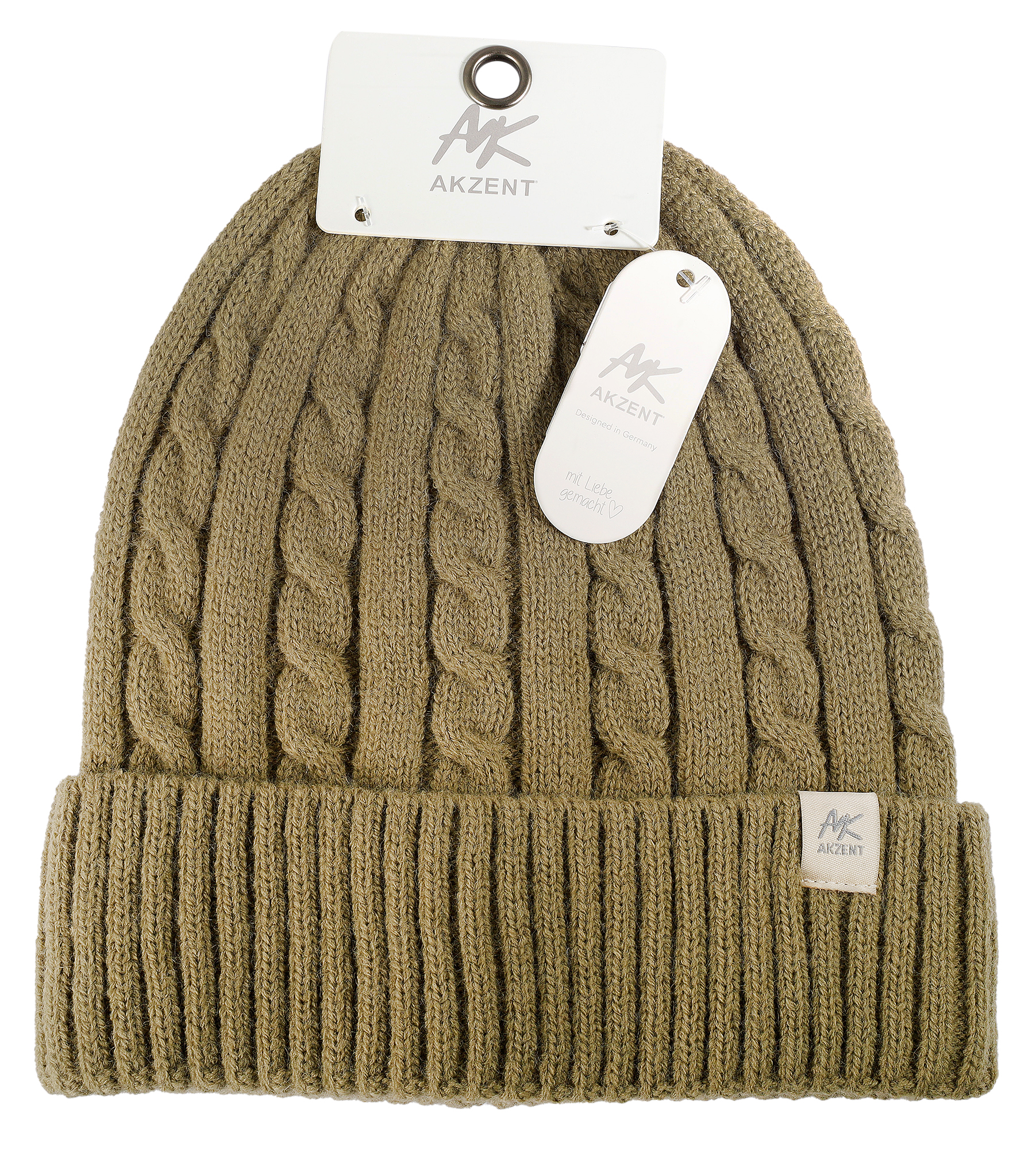 Productinformatie "Akzent Strickmütze mit Umschlag, 100% Acryl, 4-VE, khaki"