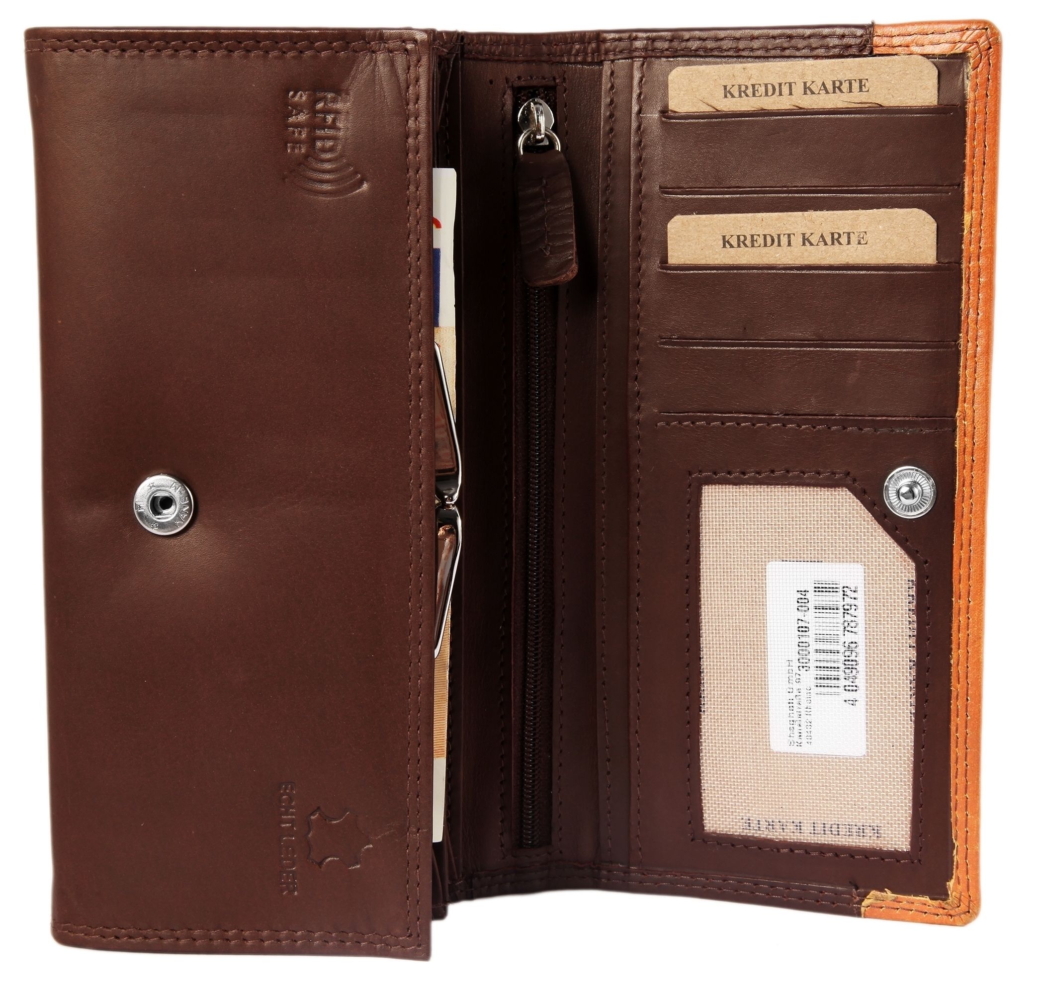 Productinformatie "Akzent echt lederen portemonnee, RFID veilig, bruin/oranje gekleurd"