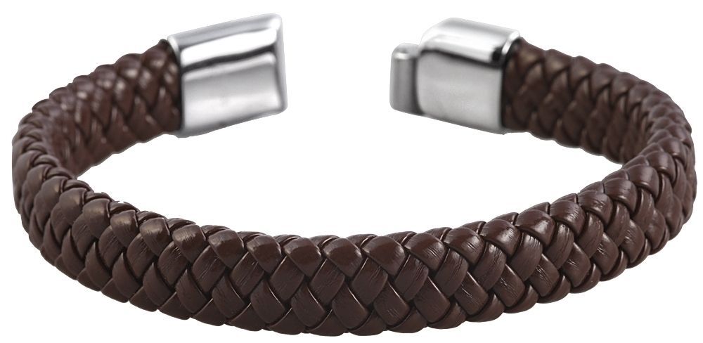 Productinformatie "Akzent geflochtenes Echtlederarmband mit Magnetschließe, braun"