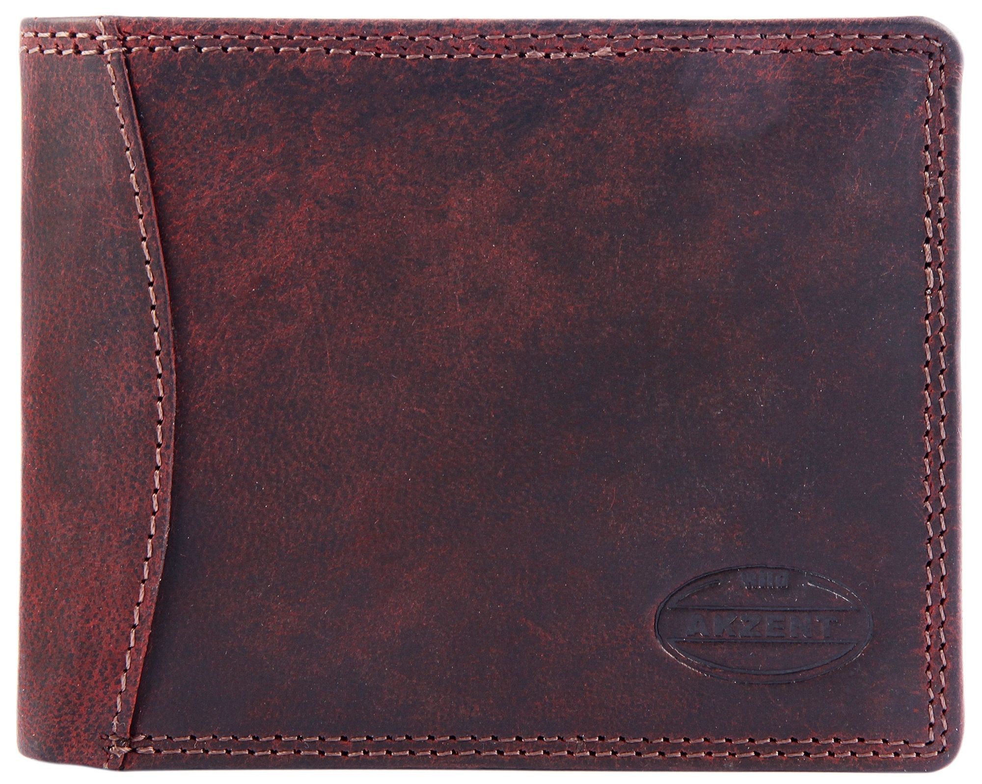 Productinformatie "Akzent herenportemonnee van echt leer in bordeaux. Formaat 12 x 10 cm."