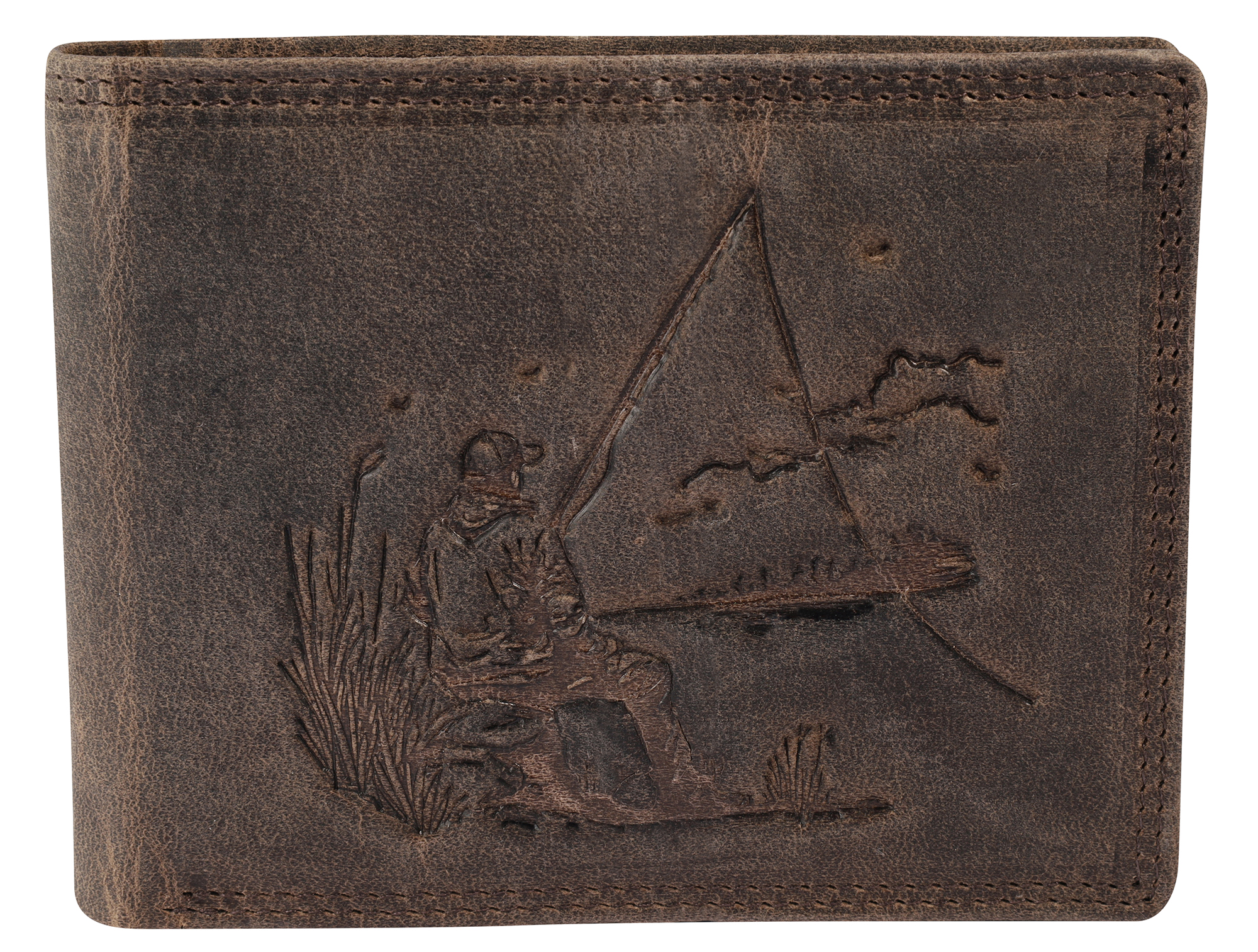 De Akzent portemonnee is gemaakt van echt leer in liggend formaat en heeft een onmiskenbaar ontwerp dankzij het reliëf in de vorm van een visser. De portemonnee is een echte ruimtebespaarder en biedt veel opbergruimte voor al je belangrijke documenten. De dubbele stiksels aan de buiten- en binnenkant zorgen voor een goede duurzaamheid en stabiliteit. Dankzij de handige indeling heeft hij 6 creditcardvakjes, 2 biljetvakken, 1 muntvak met drukknoopsluiting, 1 ritsvak aan de binnenkant, 2 steekvakken en 3 transparante ID-kaartvakken en een extra drukknoopsluiting aan de binnenkant houdt de pasjes veilig. De ongevulde maat is 9,5 cm lang, 12 cm breed en 2 cm dik. Een geweldig accessoire met het perfecte formaat voor dagelijks gebruik.