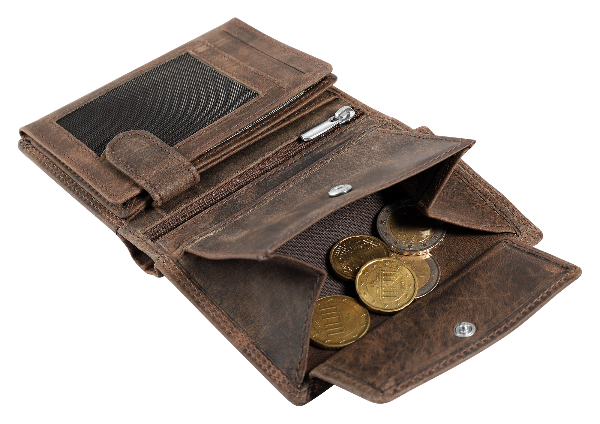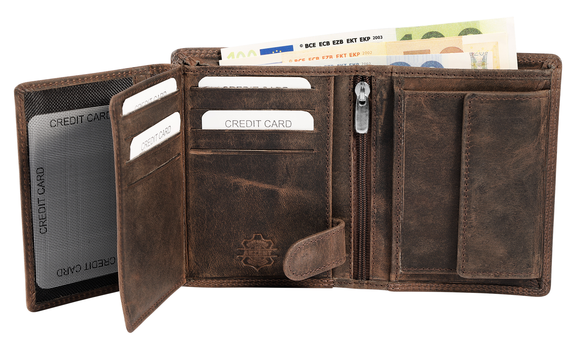 Productinformatie "Akzent portemonnee, RFID, staand formaat, doodshoofd, donkerbruin"