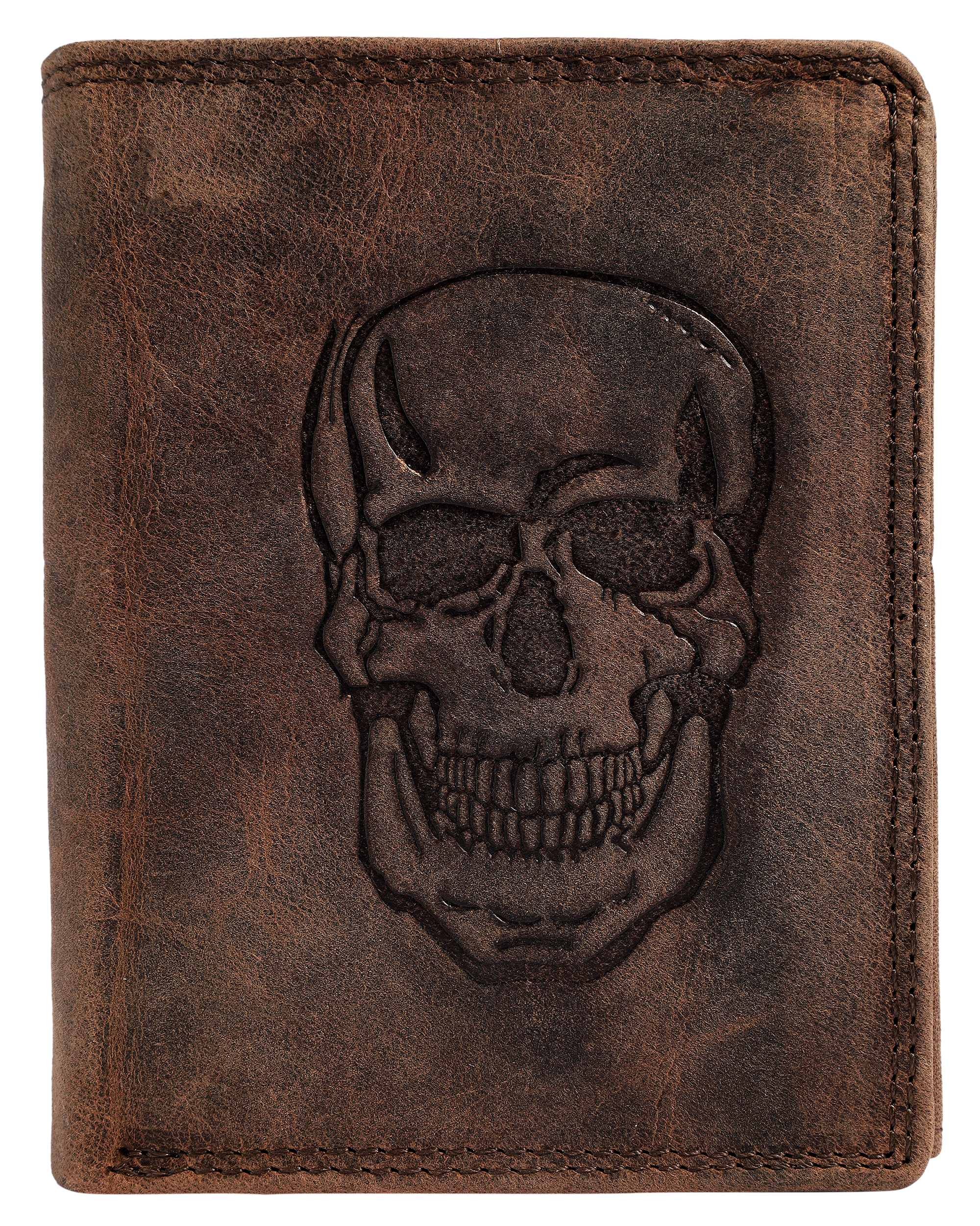 Productinformatie "Akzent portemonnee, RFID, staand formaat, schedel, bruin"