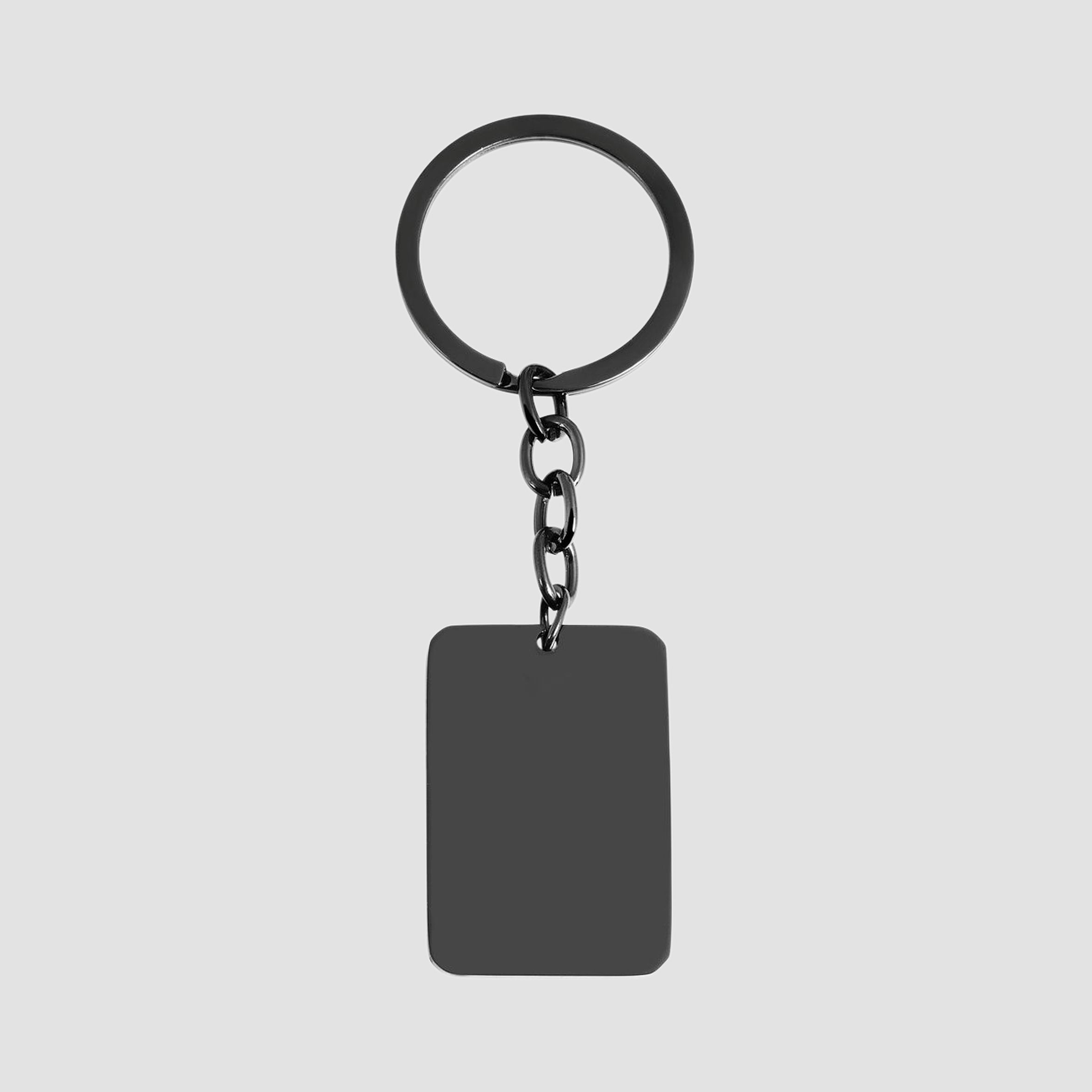 Productinformatie "Akzent roestvrij stalen sleutelhanger, rechthoekig, graveerbaar, zwart"