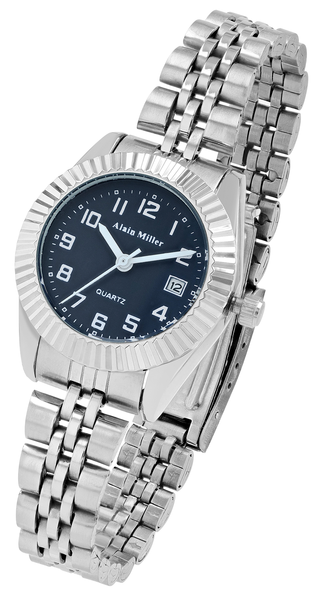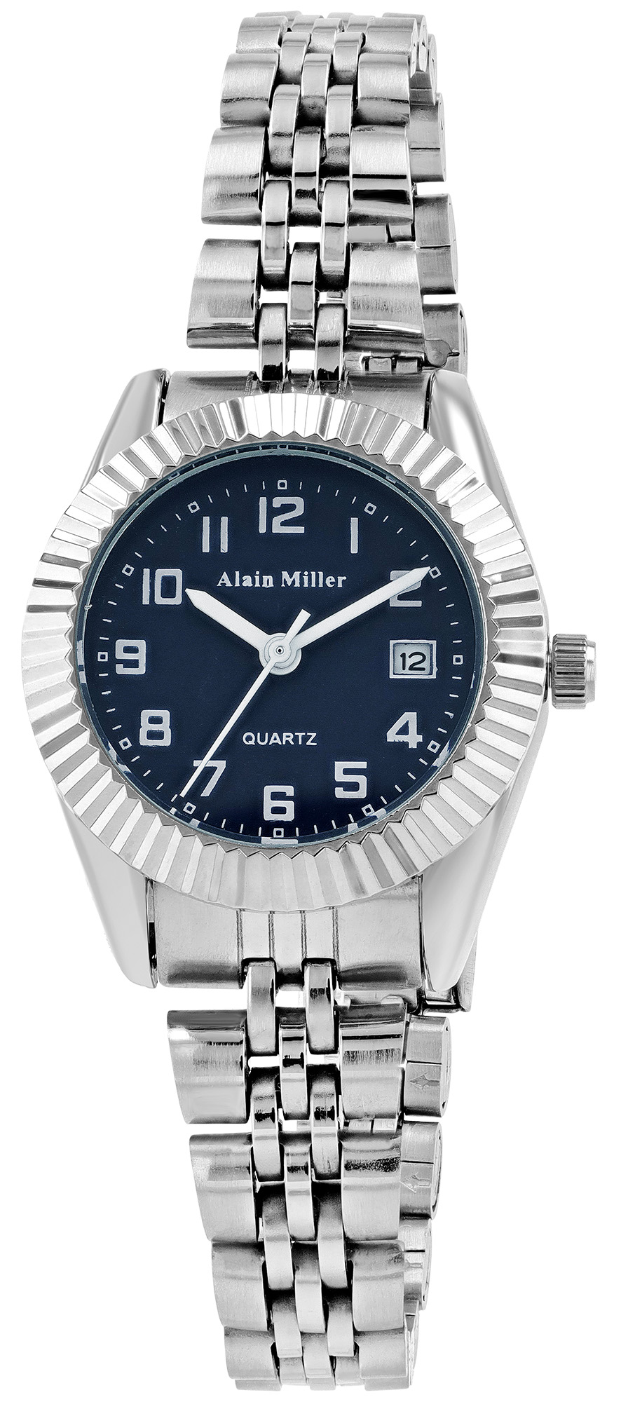 Alain Miller Damenuhr mit Gliederarmband aus Edelstahl, silberfarben/ blau