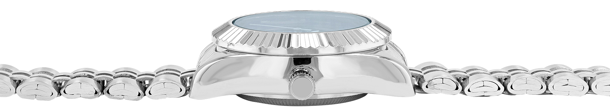 Dit dameshorloge is uitgerust met een nauwkeurig SL28 quartz uurwerk. De metalen kast heeft een diameter van 27 mm en een comfortabele hoogte van 11,5 mm. De roestvrijstalen schakelarmband heeft een lugbreedte van 13 mm en kan worden geopend en gesloten met een roestvrijstalen vouwsluiting. De totale lengte van het horloge is 19 cm, maar kan worden aangepast aan de gewenste lengte dankzij de verwijderbare elementen. De achterkant van de kast is gemaakt van roestvrij staal, wat de levensduur van het horloge verlengt. Het robuuste mineraalglas beschermt de wijzerplaat met Arabische cijfers, wat zorgt voor een duidelijk en gemakkelijk af te lezen display. Een ander detail van dit dameshorloge is dat het is uitgerust met een datumweergave.