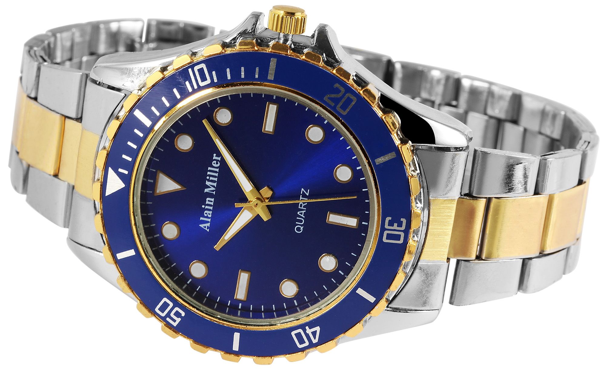 Het analoge herenpolshorloge met 3 wijzers van het merk Alain Miller heeft een hoogwaardig quartz uurwerk. De zilvergoudkleurige roestvrijstalen armband is 20 mm breed bij de lug en kan worden geopend en gesloten met een roestvrijstalen vouwsluiting. De totale lengte van het horloge is 21,5 cm. De zilvergoudkleurige metalen kast met mineraalglas heeft een diameter van 44 mm en een kasthoogte van 11 mm. De achterkant van de kast is gemaakt van roestvrij staal. De blauwe wijzerplaat is gemakkelijk af te lezen, zelfs in het donker, dankzij de Superluminova wijzers, lijn- en puntindexen. Het lichte gewicht van het horloge maakt het comfortabel om te dragen.