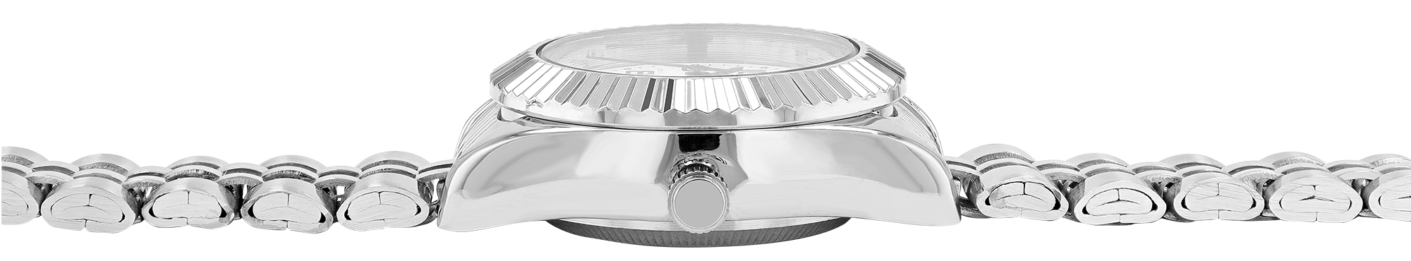 Dit dameshorloge is uitgerust met een nauwkeurig SL28 quartz uurwerk. De metalen kast heeft een diameter van 27 mm en een comfortabele hoogte van 11,5 mm. De roestvrijstalen schakelarmband heeft een lugbreedte van 13 mm en kan worden geopend en gesloten met een roestvrijstalen vouwsluiting. De totale lengte van het horloge is 19 cm, maar kan worden aangepast aan de gewenste lengte dankzij de verwijderbare elementen. De achterkant van de kast is gemaakt van roestvrij staal, wat de levensduur van het horloge verlengt. Het robuuste mineraalglas beschermt de wijzerplaat met Arabische cijfers, wat zorgt voor een duidelijk en gemakkelijk af te lezen display. Een ander detail van dit dameshorloge is dat het is uitgerust met een datumweergave.